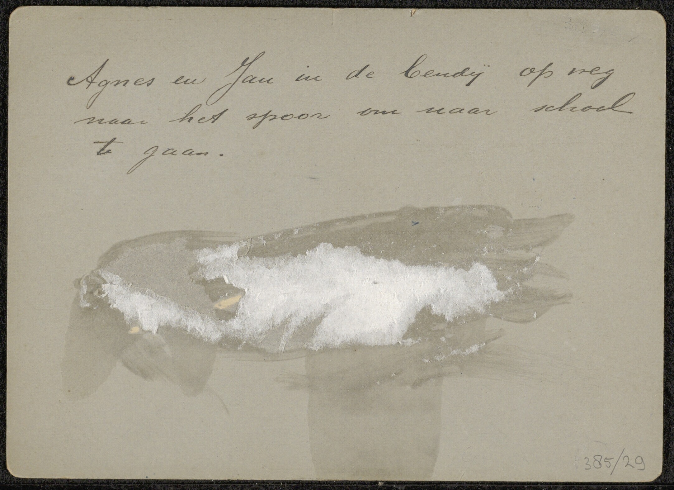 Jan en Agnes, children of the Nienaber family, in a carriage at their house at Delanggu