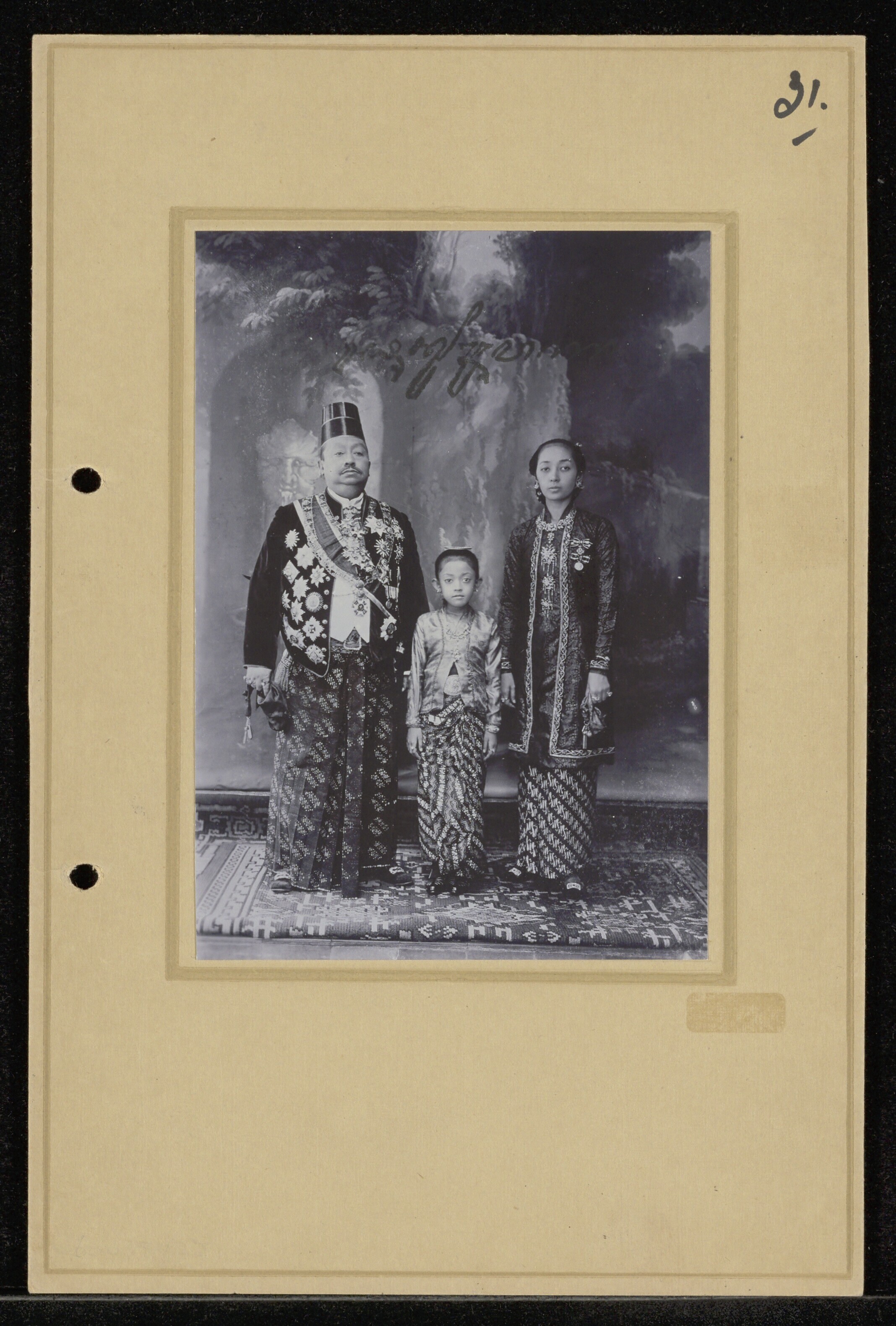 Studio portrait of Paku Buwono X, Susuhunan of Surakarta (Solo), with his wife Ratu Mas and daughter Kustiya