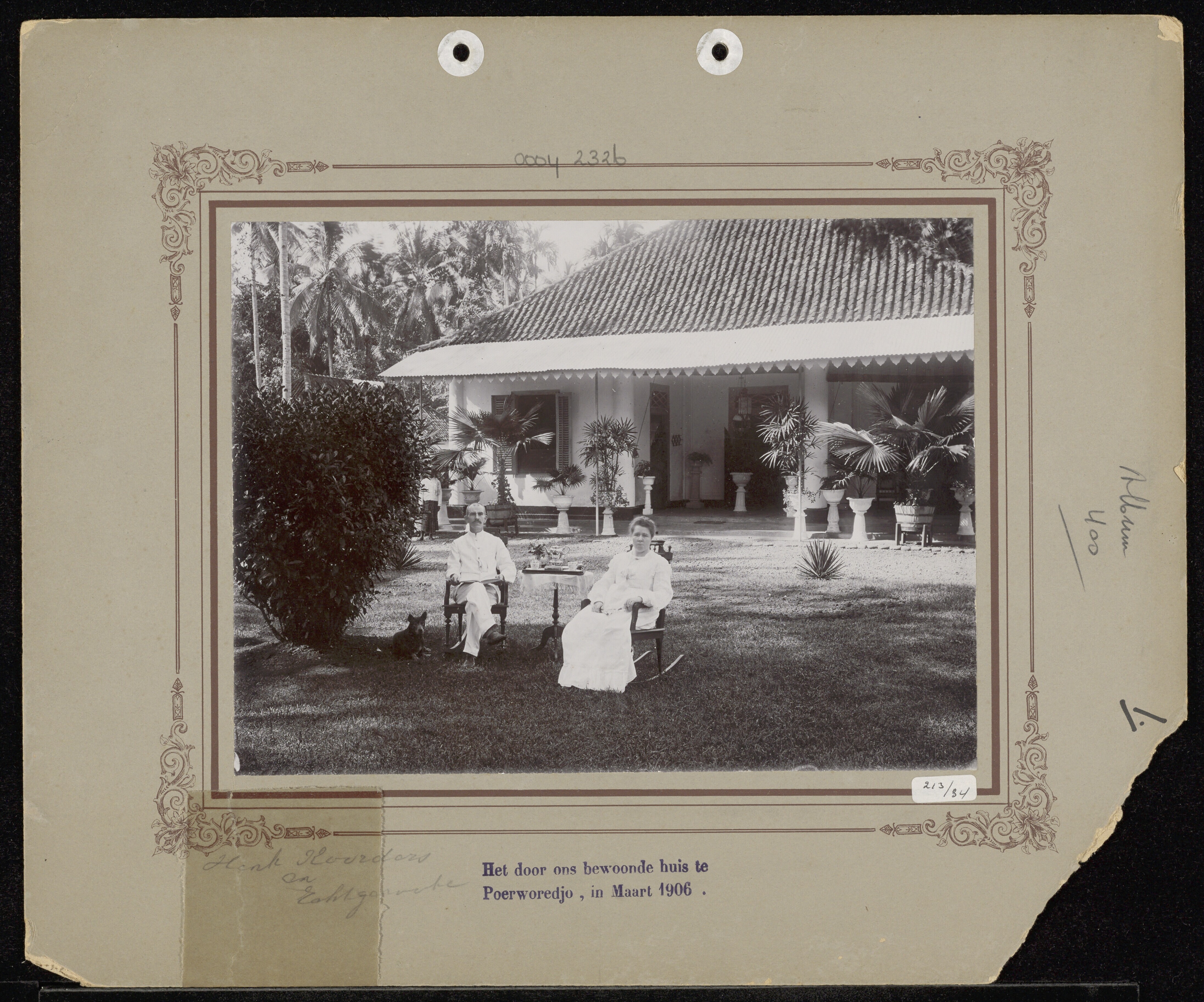 Henk and Anna Koorders drinking tea in the garden of their home in Purworejo, Java.