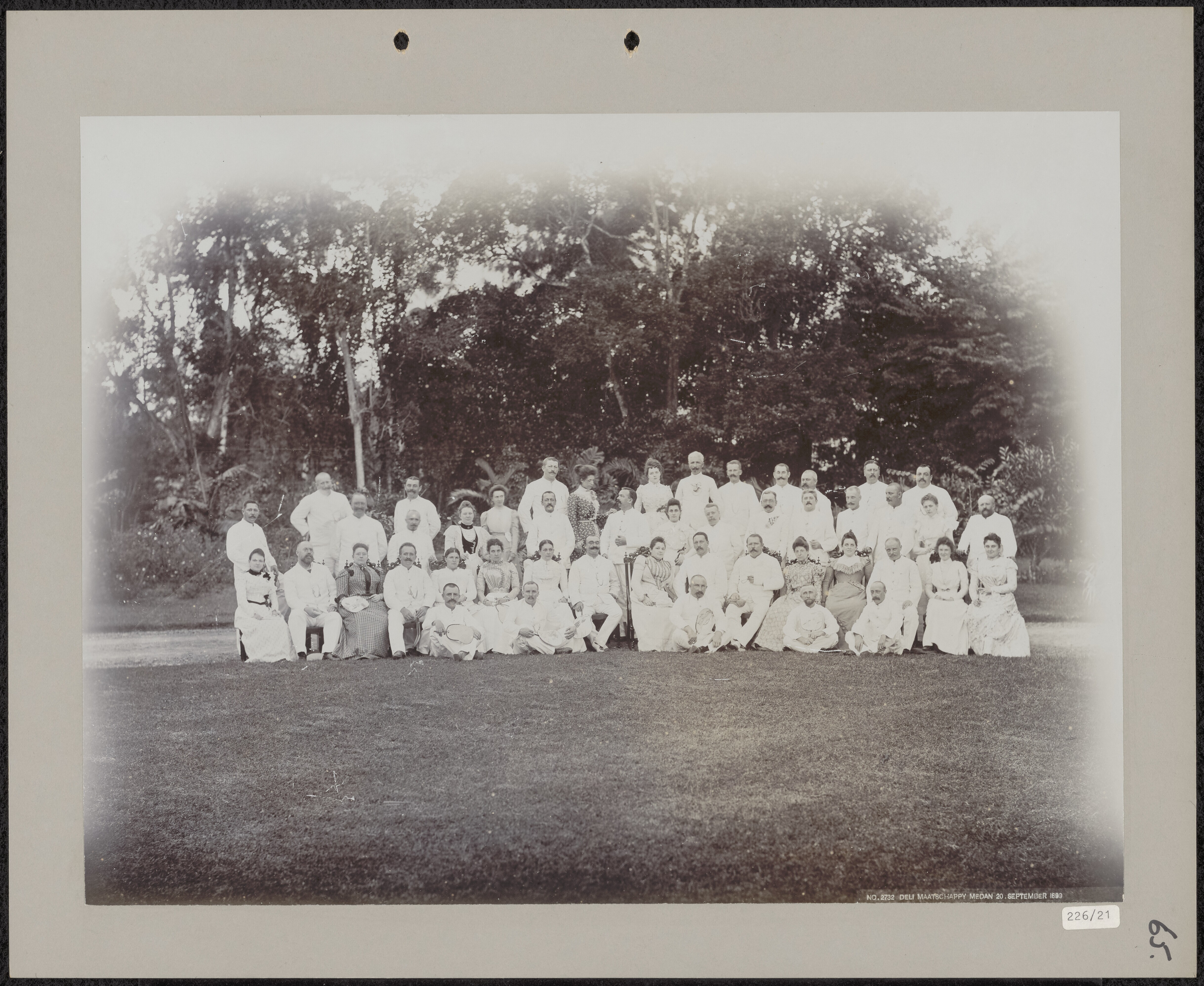 Groepsportret van mensen verbonden aan de Deli maatschappij