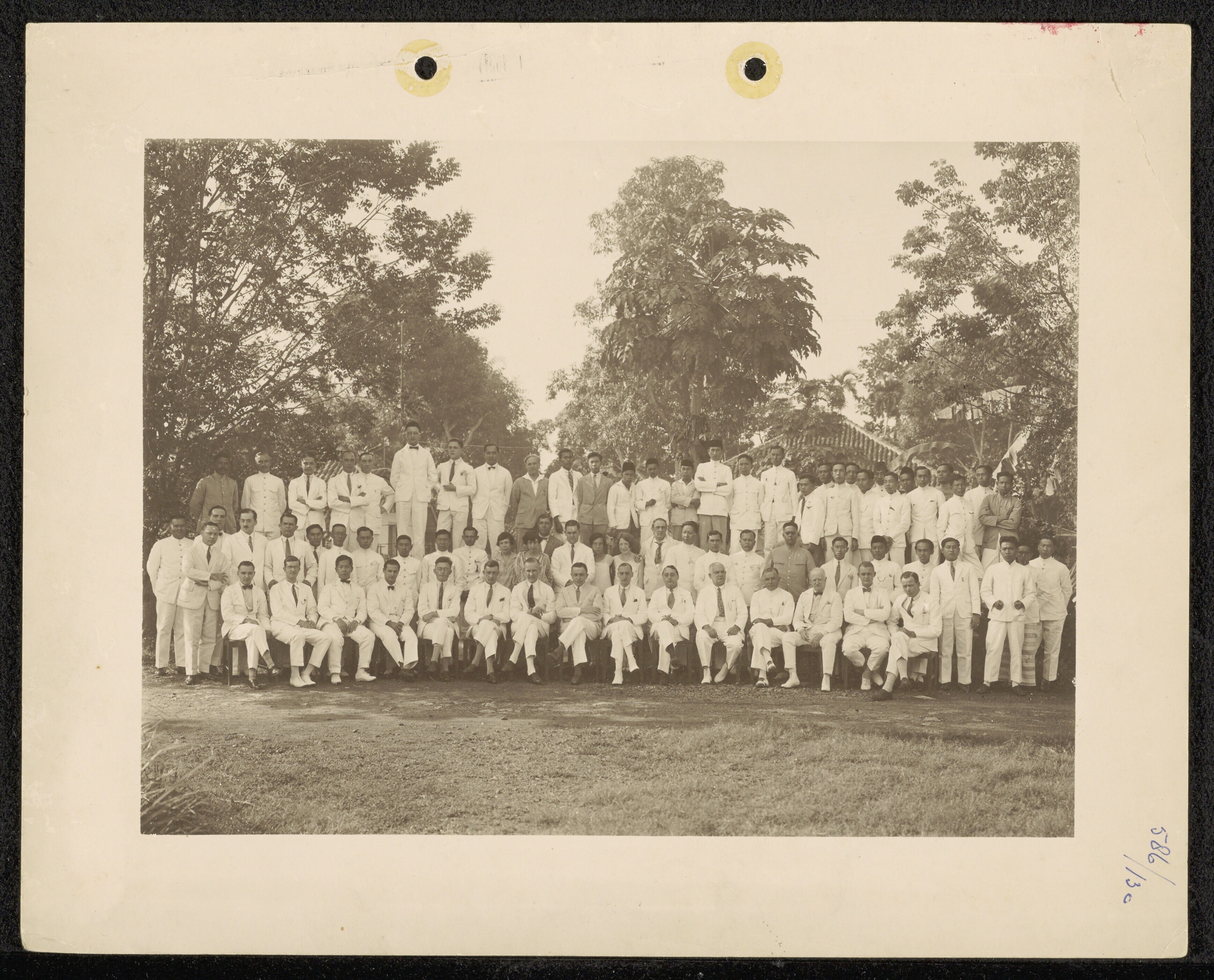 Groepsportret met het personeel van het kantoor van de firma Lindeteves-Stokvis in Batavia