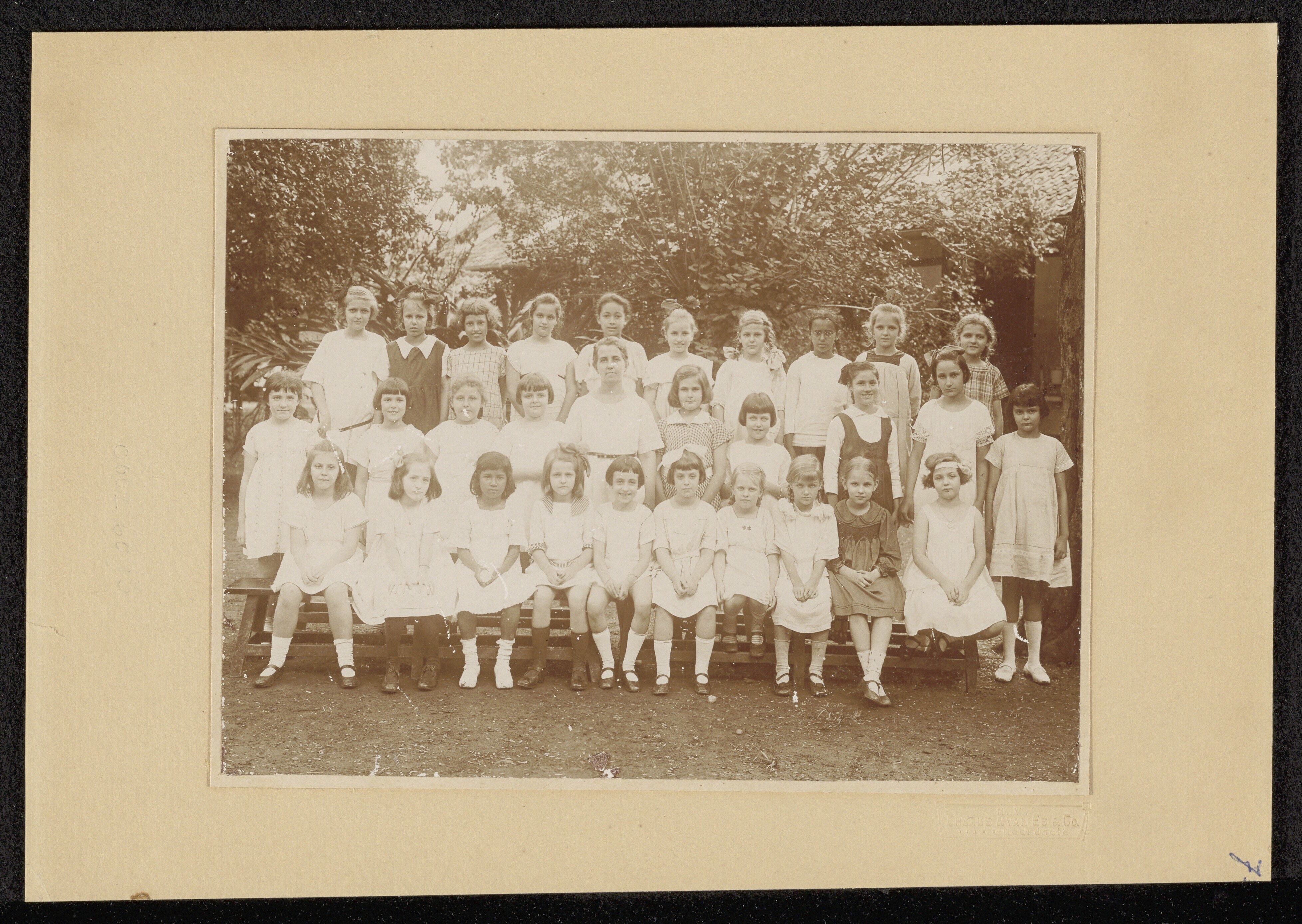 Groepsportret schoolmeisjes en onderwijzers