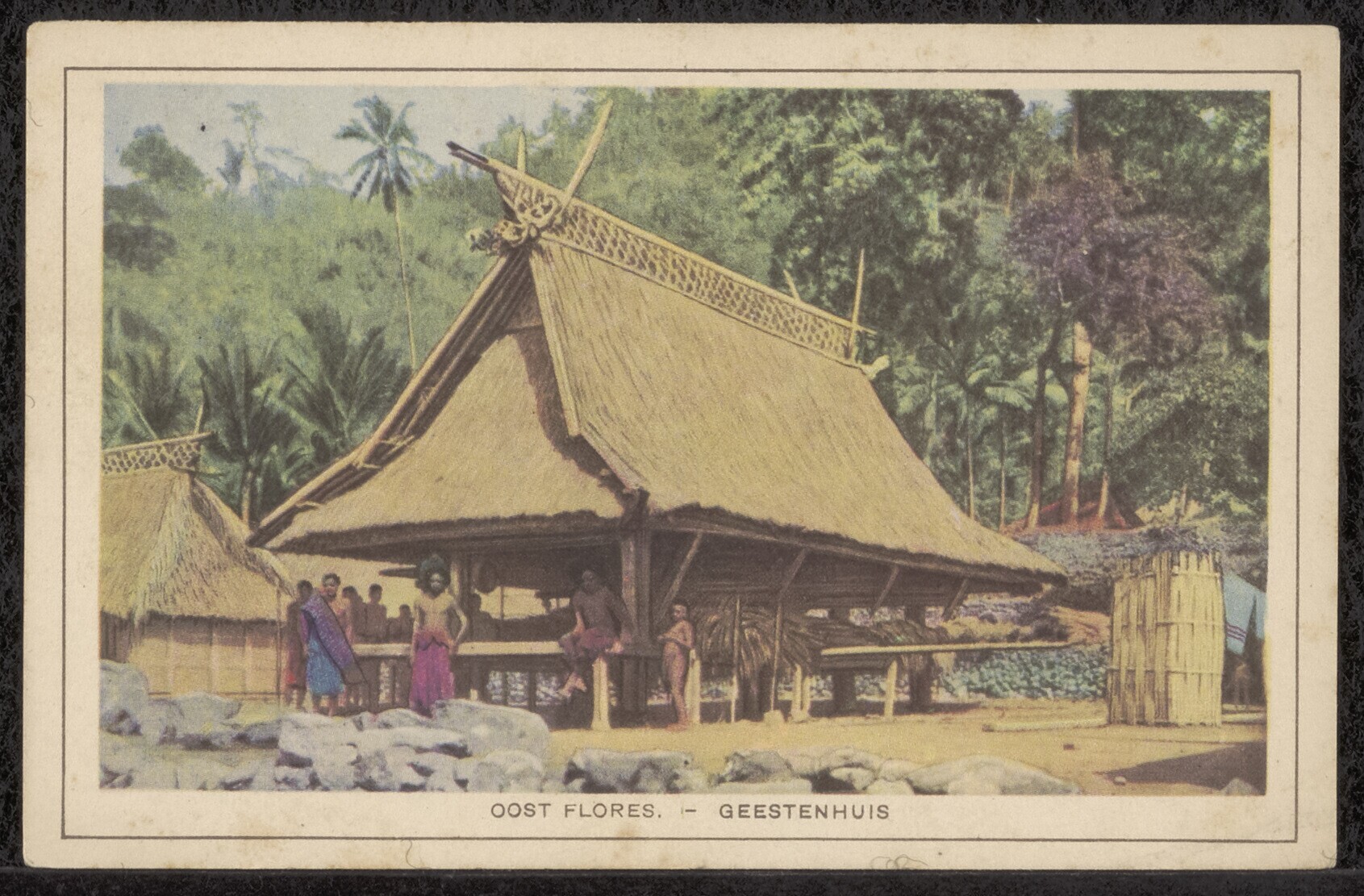 Prentbriefkaart uit een doos met losse foto's uit Nederlands-Indië