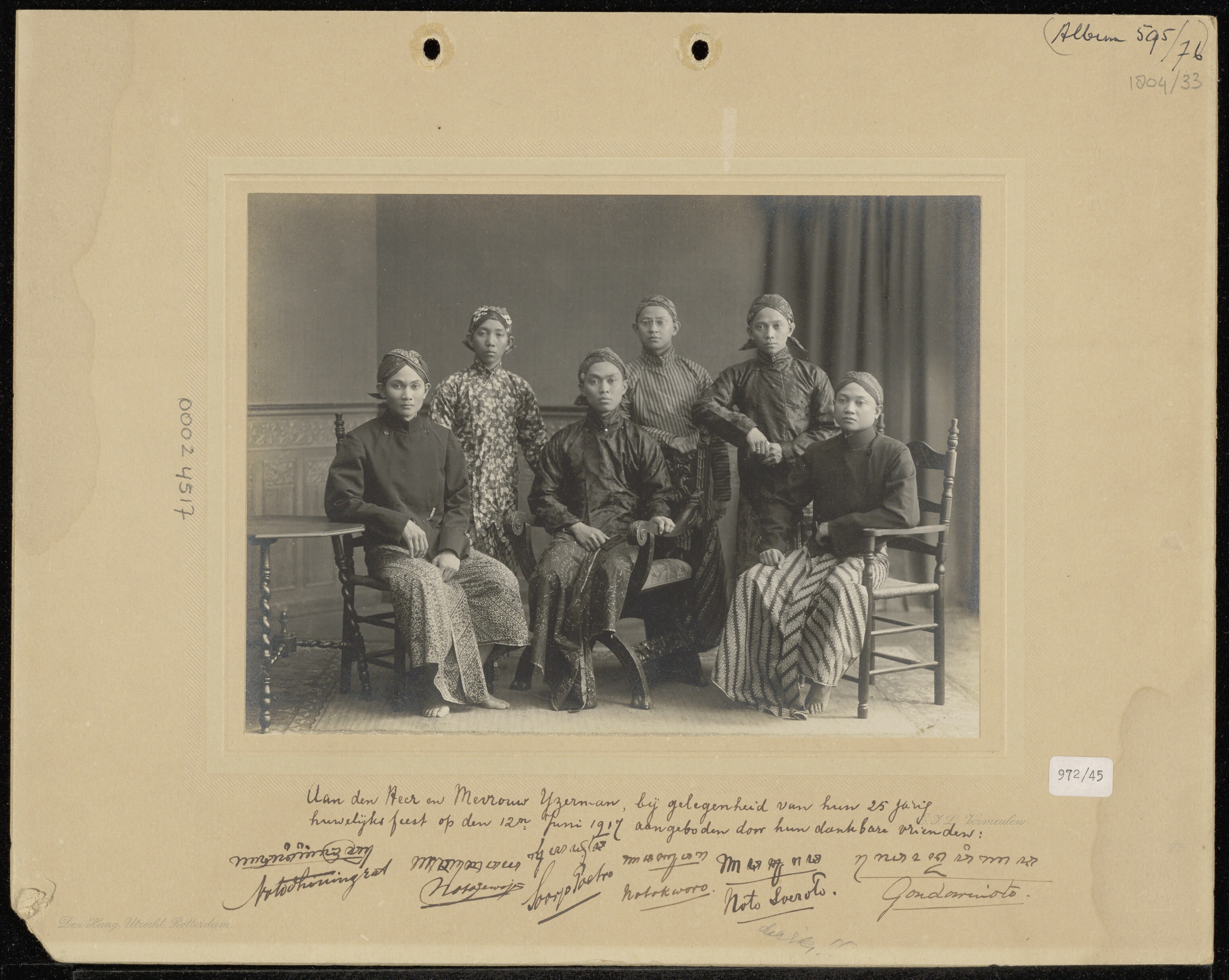 Groepsportret van zes Javanen als student verbonden aan de Universiteit van Leiden.