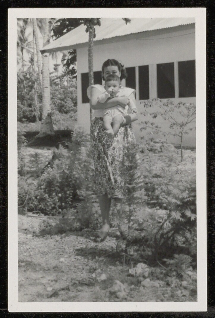 Portret van een vrouw met een kind in een tuin in Indonesië