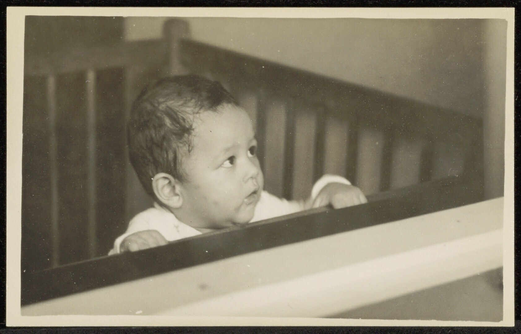 Portret van een peuter in een box