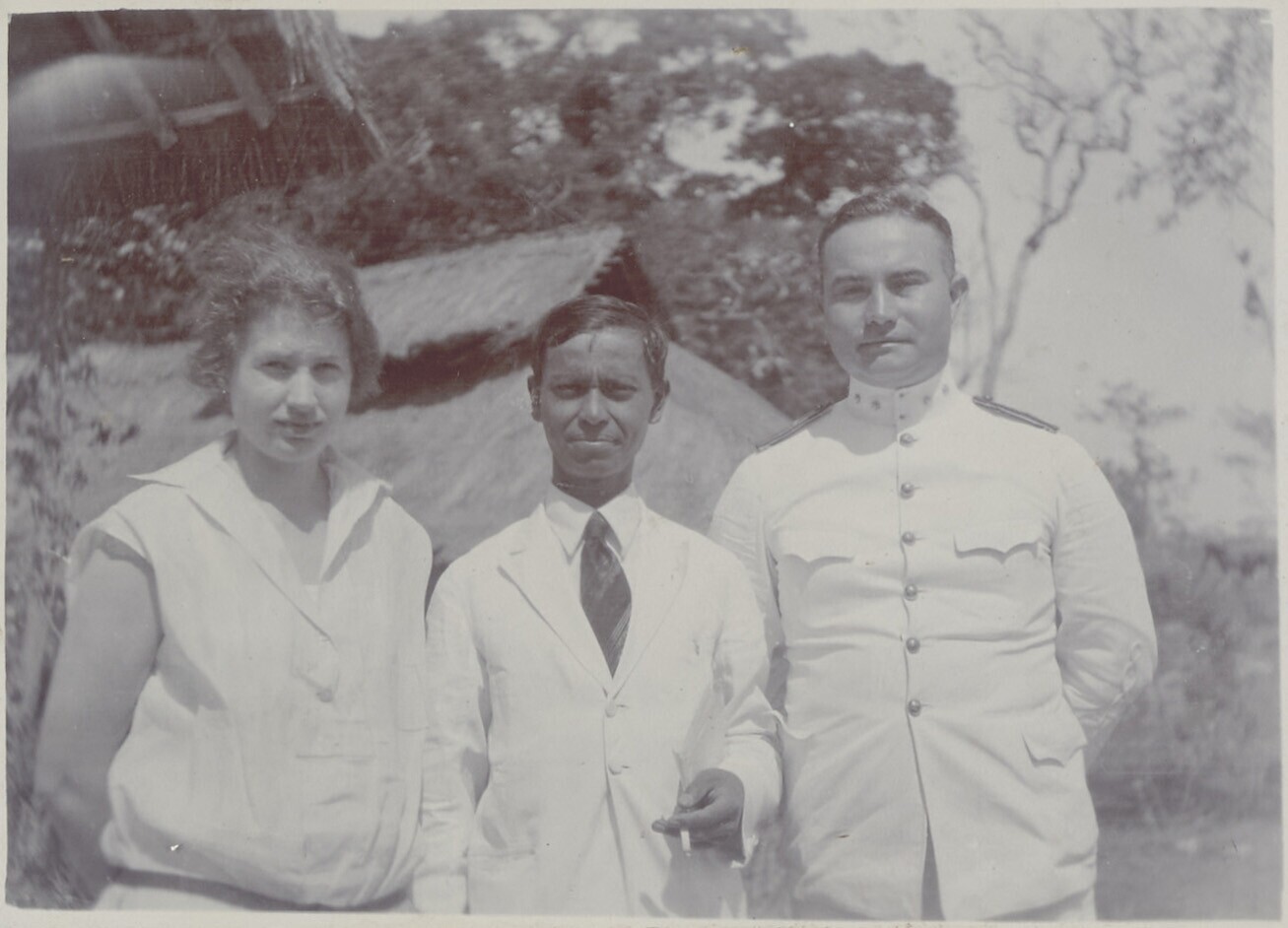 Portret van Europese vrouw, Indische man in uniform en Timorese man
