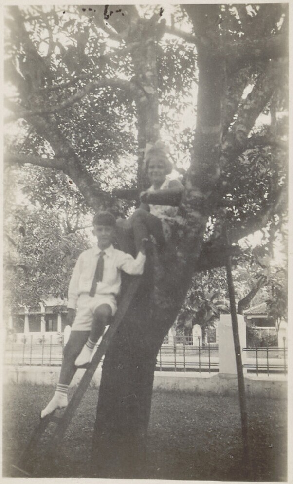 Portret van een jonge man en een meisje in een boom