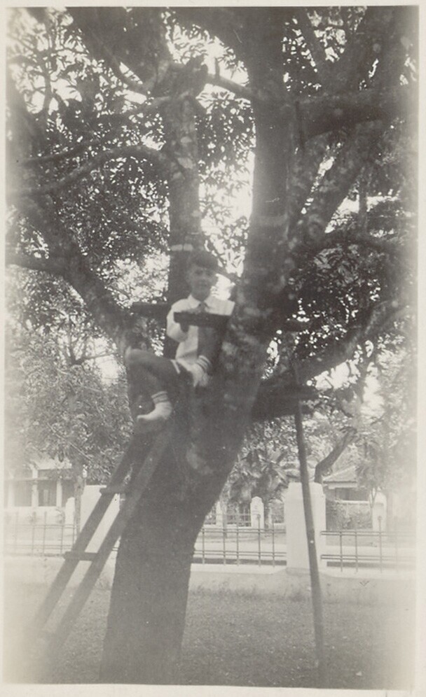 Portret van een jonge man in een boom