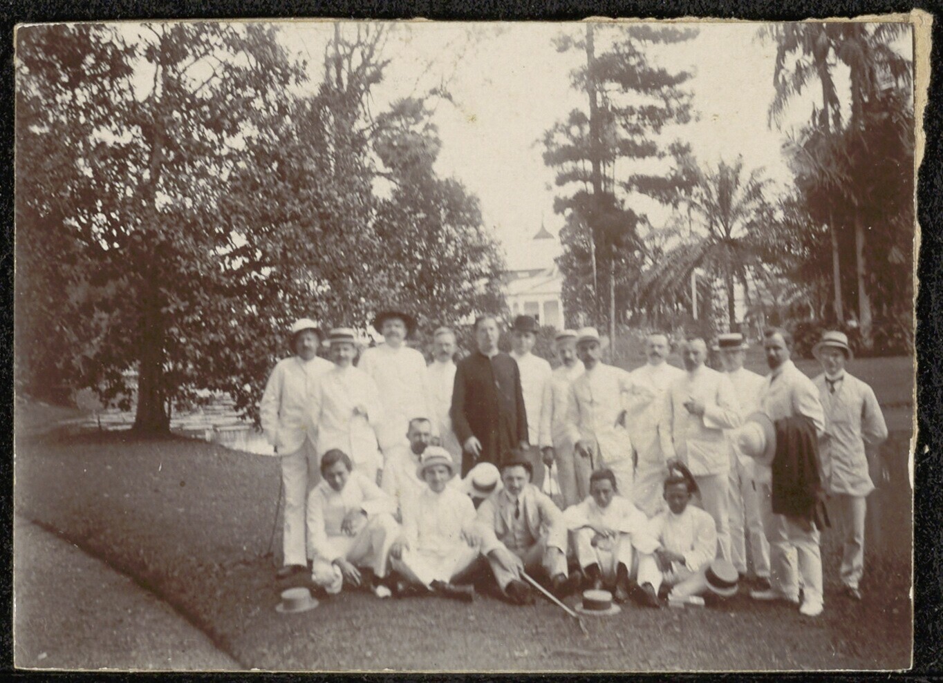 Portret van een gezelschap in de tuin