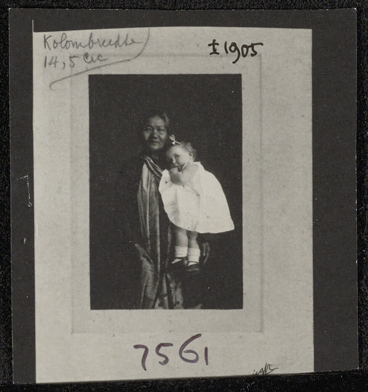 Dubbelportret van een kinderverzorgster met een klein kind op haar arm