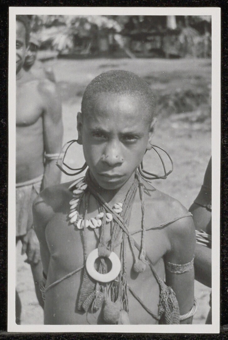 Portret van een jongen met oor-, neus- en halssieraden