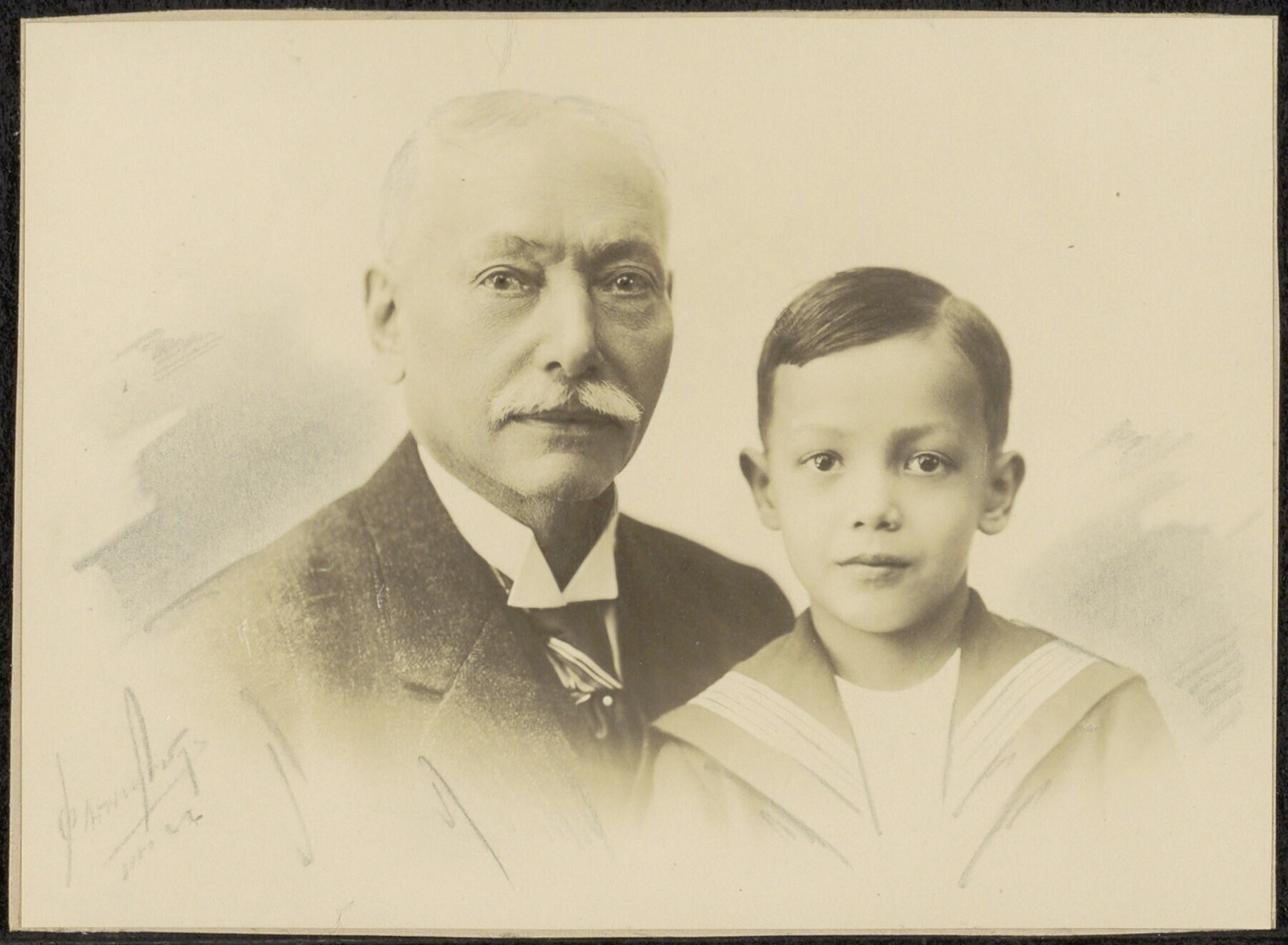 Studioportret van een oudere man en een jongen