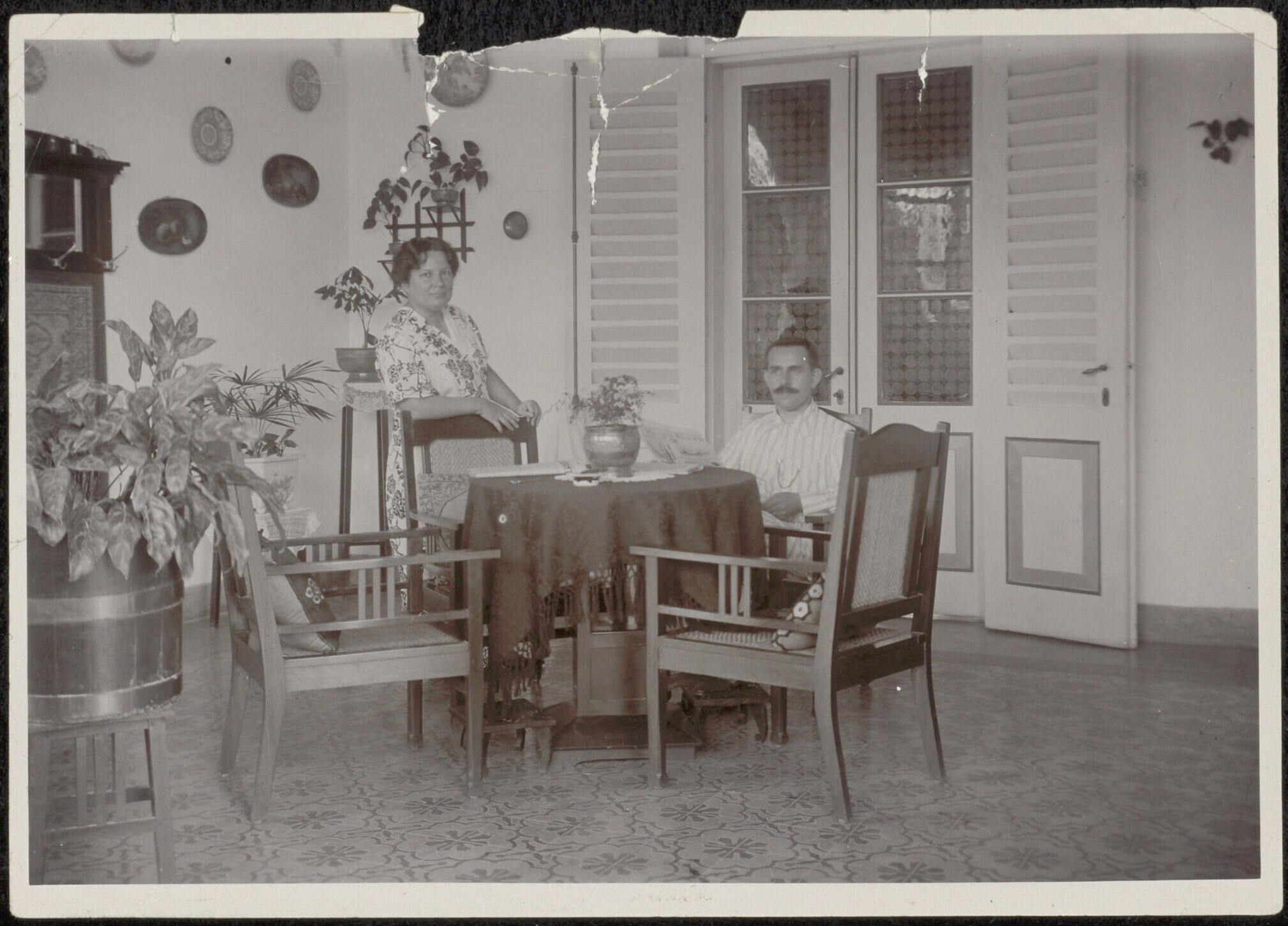 Portret van een echtpaar, vermoedelijk op de galerij