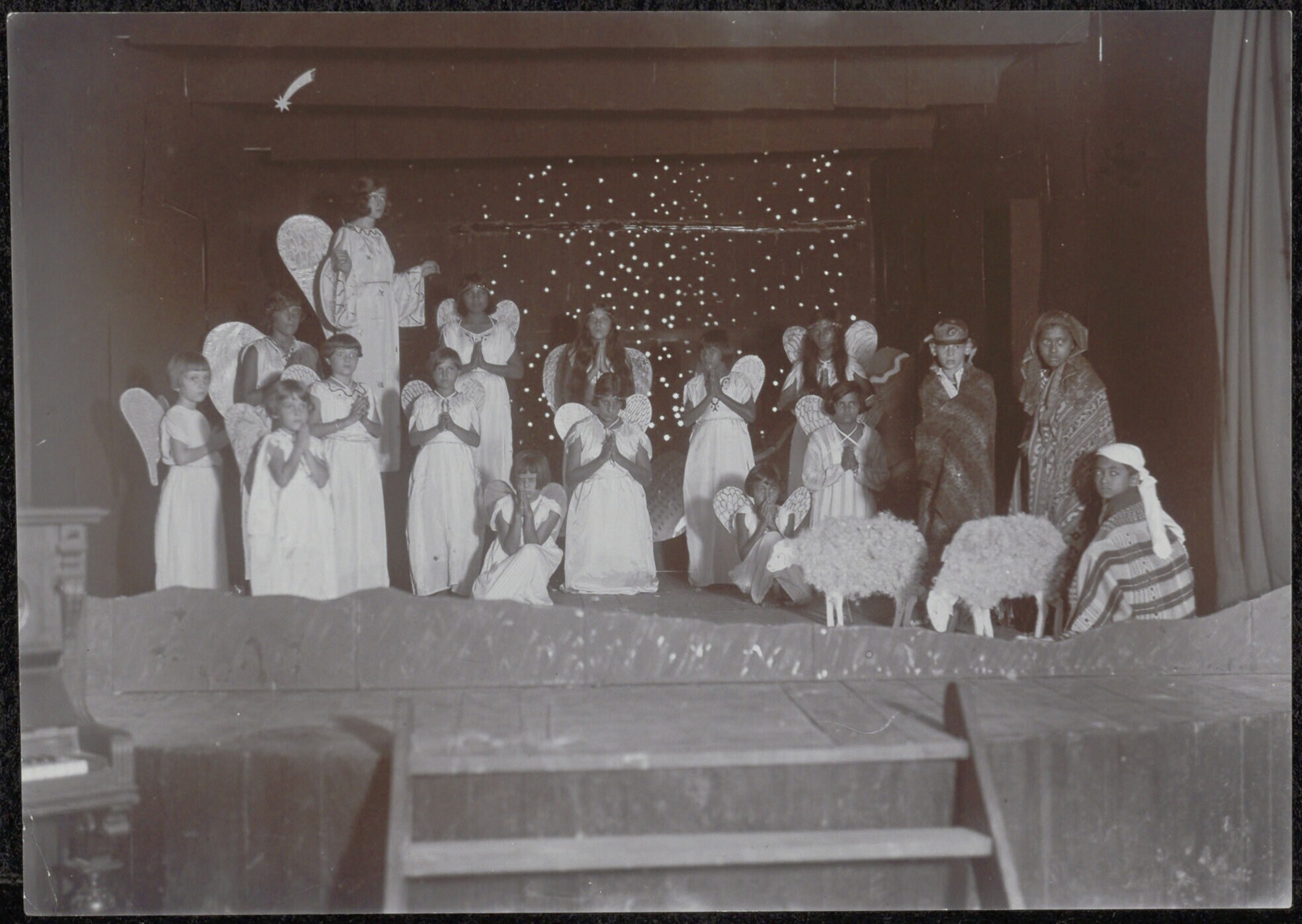 Kinderen voeren een toneelstuk op waarin zij het kerstverhaal vertellen