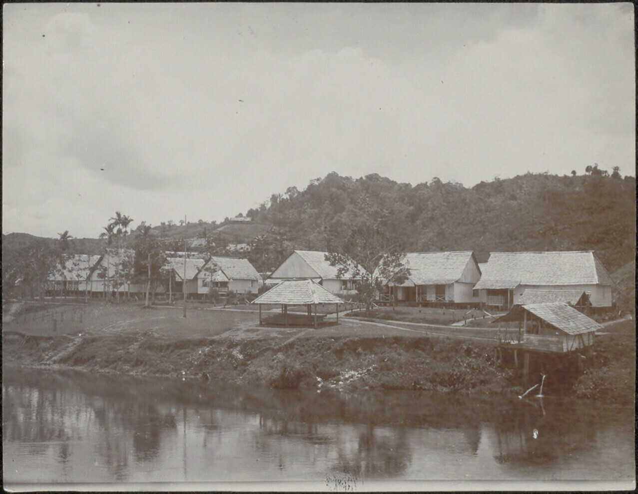 Huizen langs de oever van de rivier, Longnawan