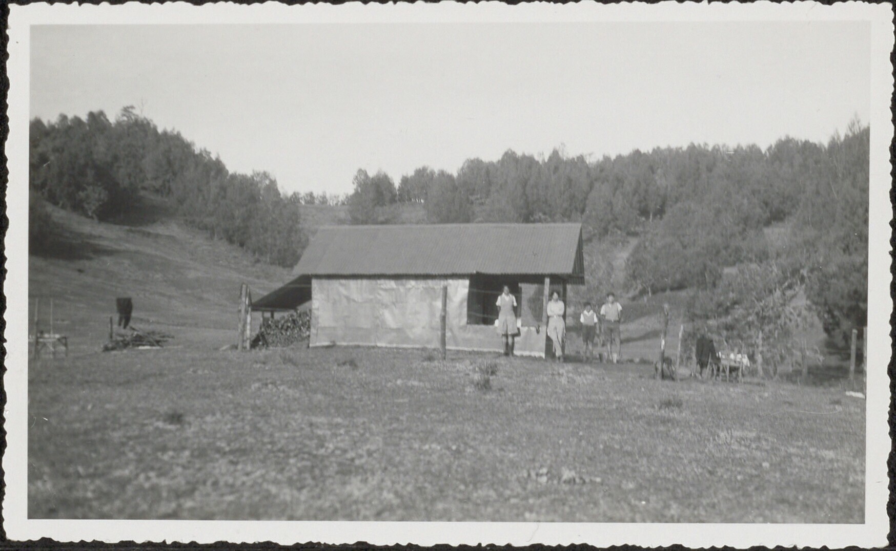 Groep bij berghut tijdens een uitstapje naar de bergen