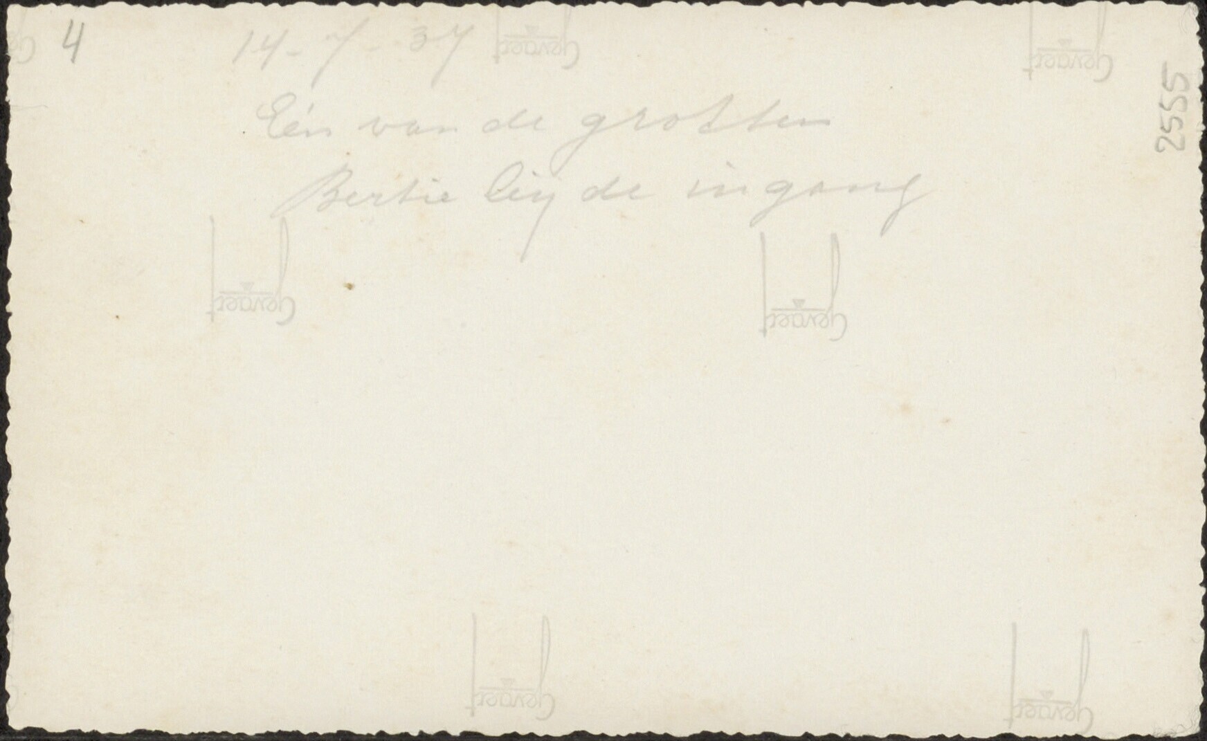 Groepsportret bij de ingang van een grot tijdens een uitstapje naar de bergen
