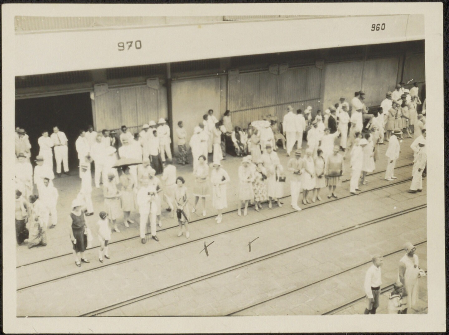 Afscheidnemers of afhalers op de kade in Tandjong Priok