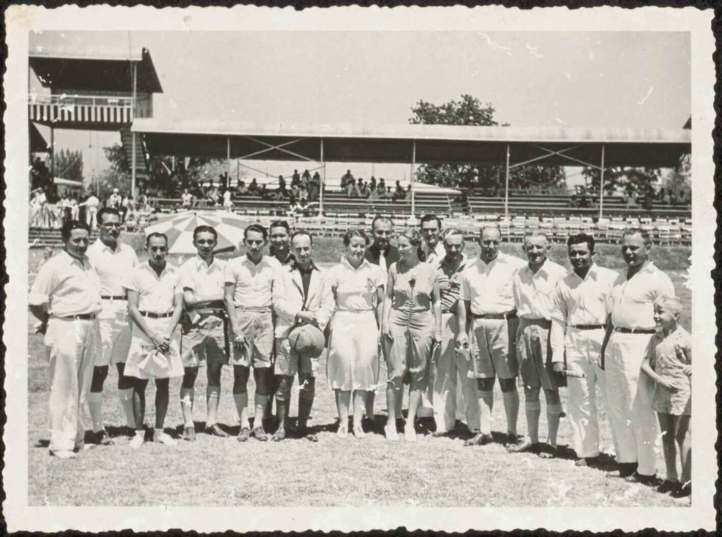 Groepsportret op sportterrein