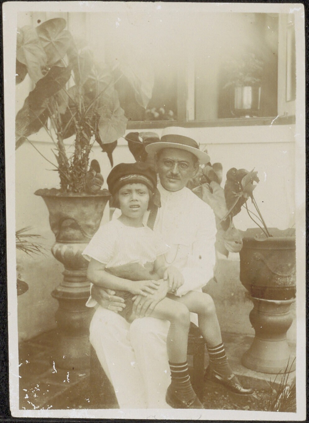 Portret van een man met een kind op schoot