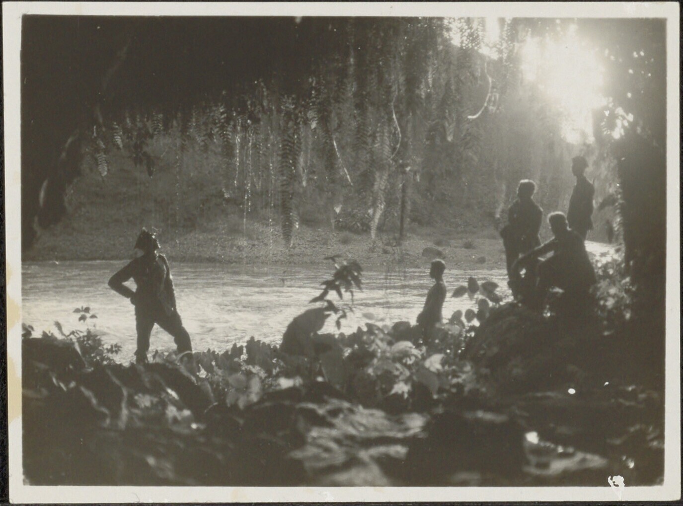 Patrouille in een grot aan de oever van een rivier