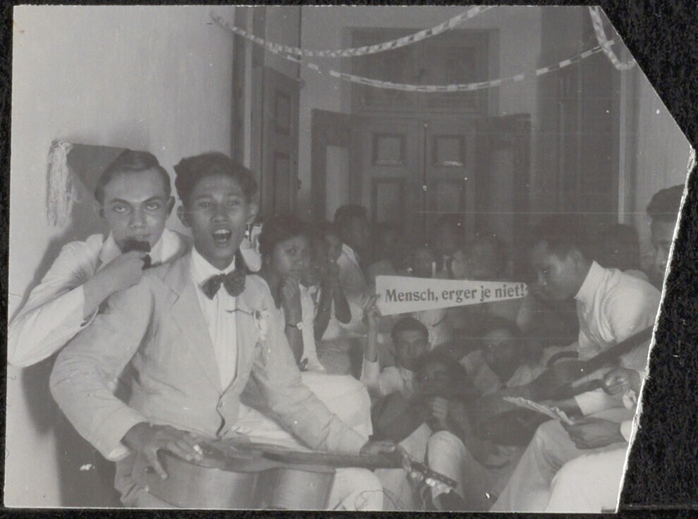 Feestje, met op de voorgond een jongen met gitaar