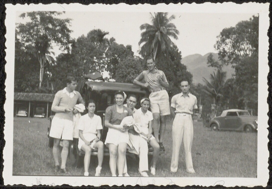 Groepsportret bij auto