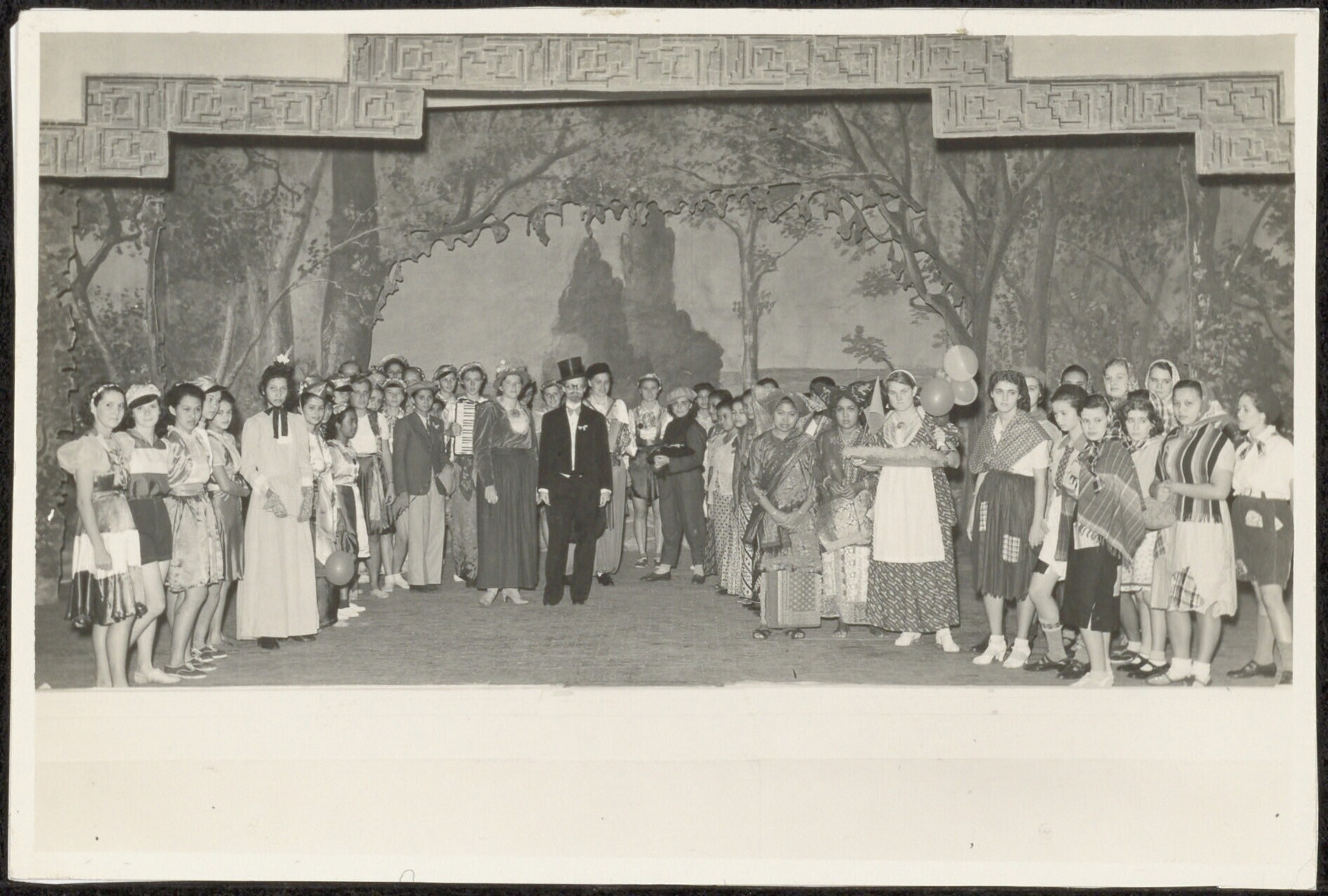 Toneelstuk ten bate van het Spitfire-fonds, opgevoerd door de leerlingen van een kweekschool voor fröbel-onderwijzeressen in Bandoeng