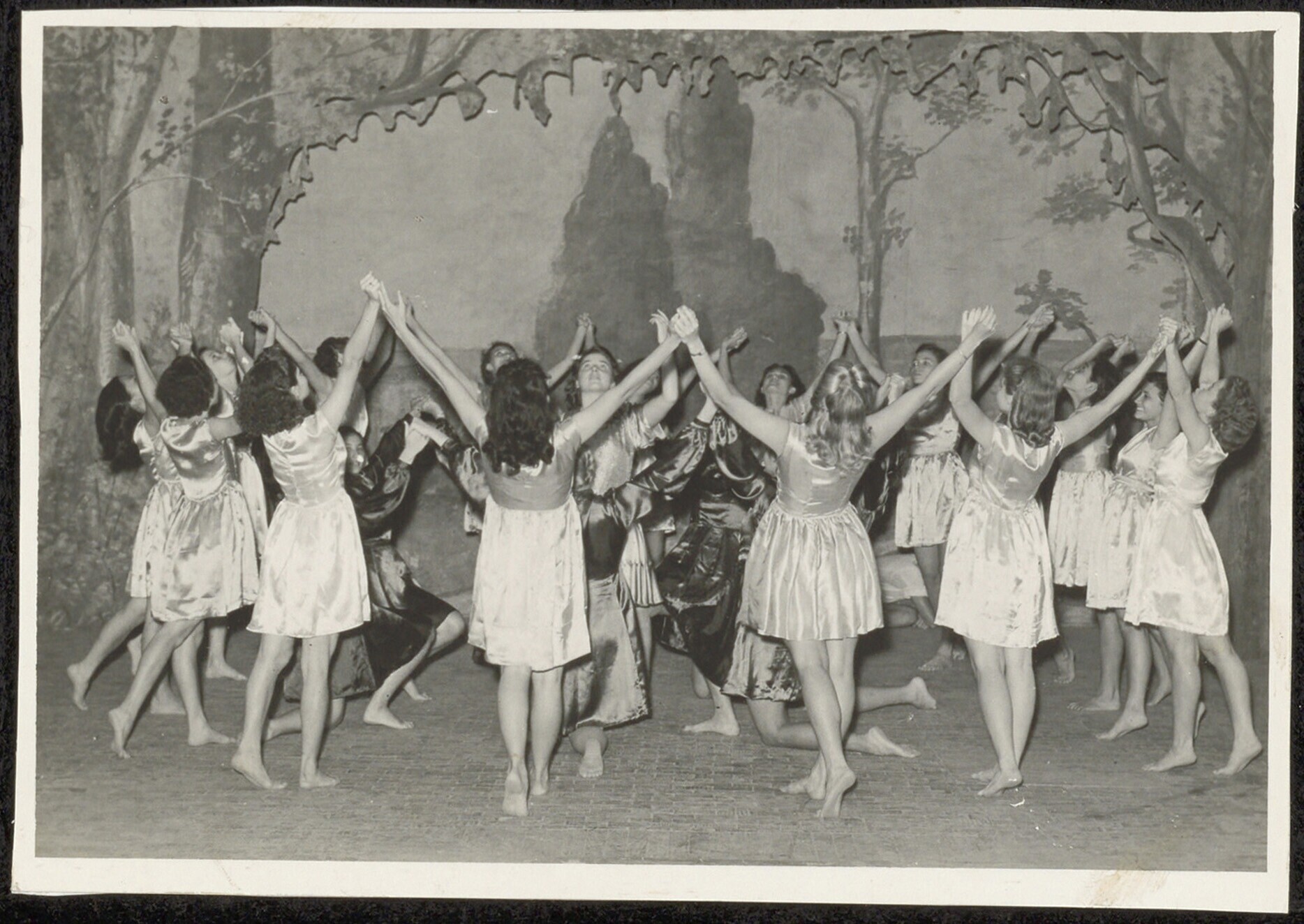 Toneelstuk ten bate van het Spitfire-fonds, opgevoerd door de leerlingen van een kweekschool voor fröbel-onderwijzeressen in Bandoeng