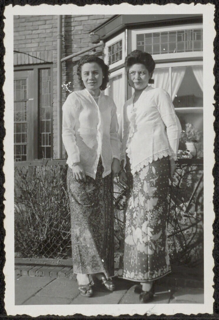 Portret van twee vrouwen, gekleed in sarong en kabaja