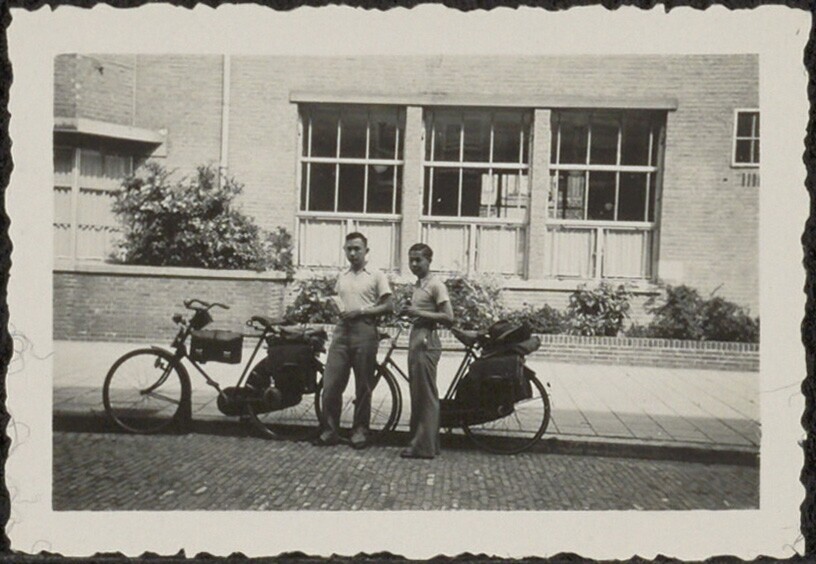Mannen gereed voor een fietstocht naar de Olympische Spelen van Berlijn