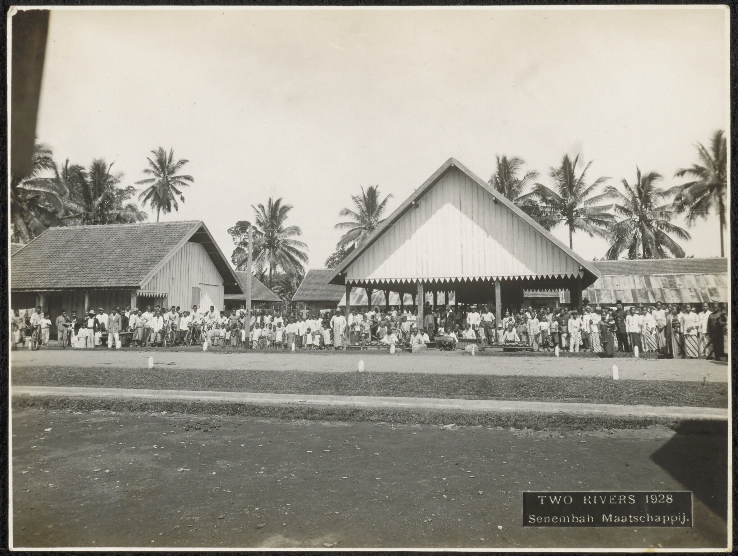 Groepsfoto van mensen op de plantage Two Rivers