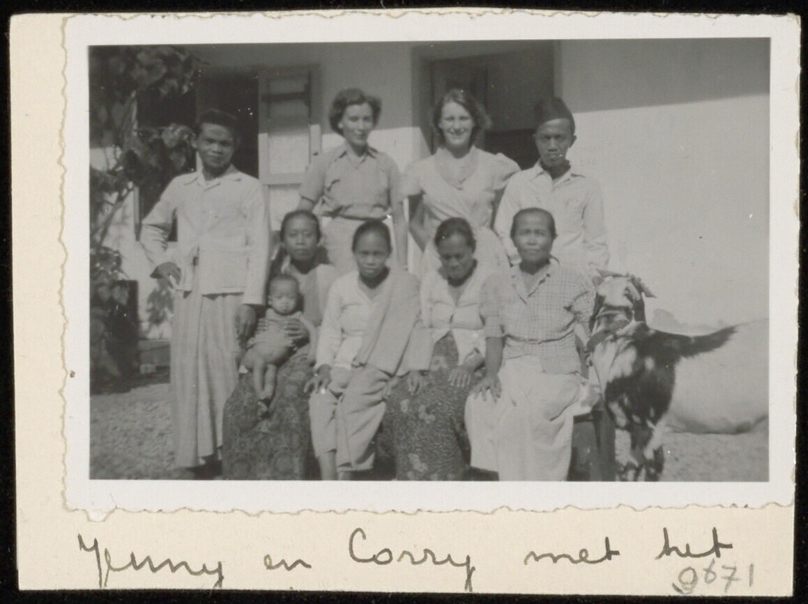 Groepsportret van twee vrouwen met vermoedelijk het personeel