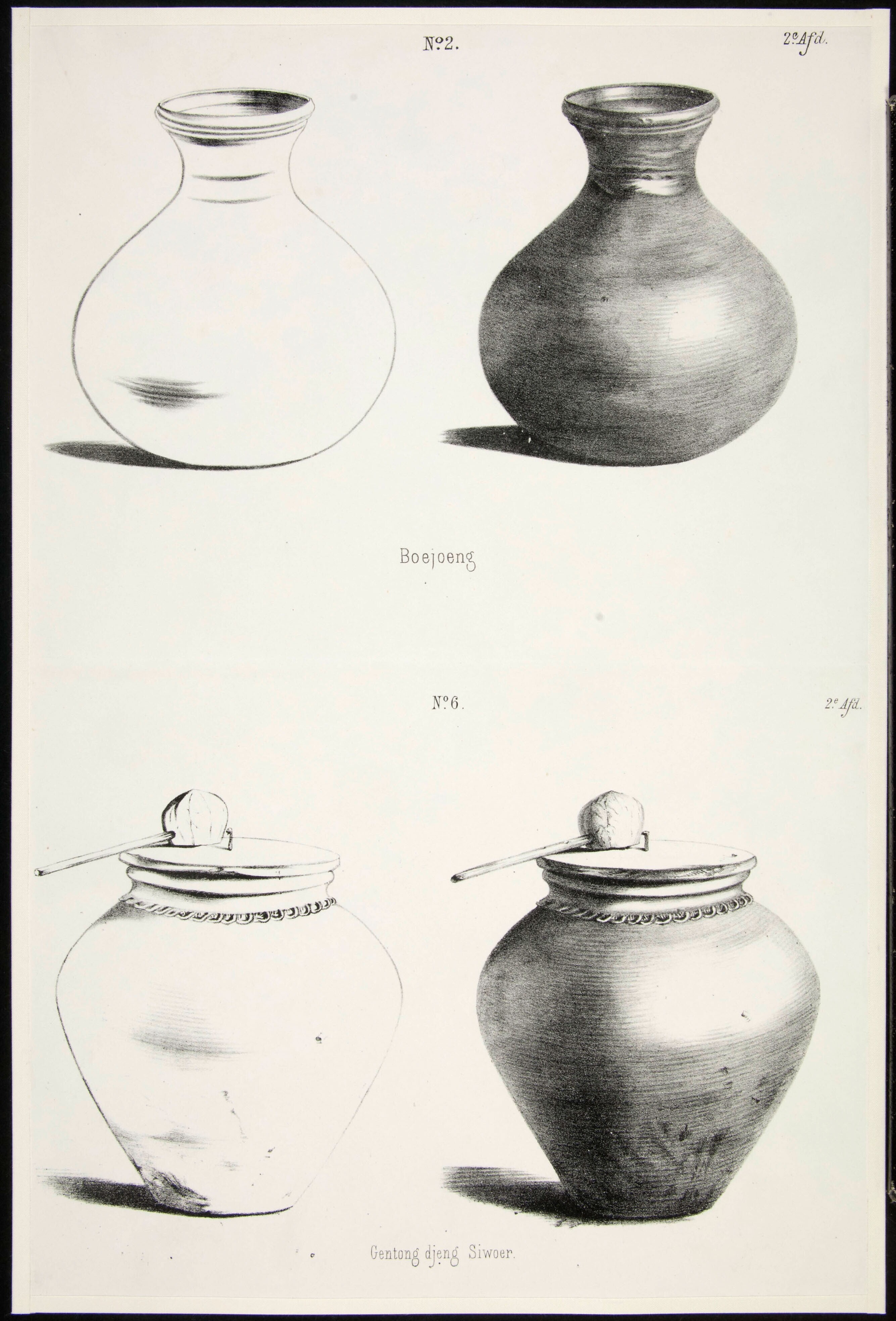 Een kruik (no 2) en een waterkruik met schep (no 6)
