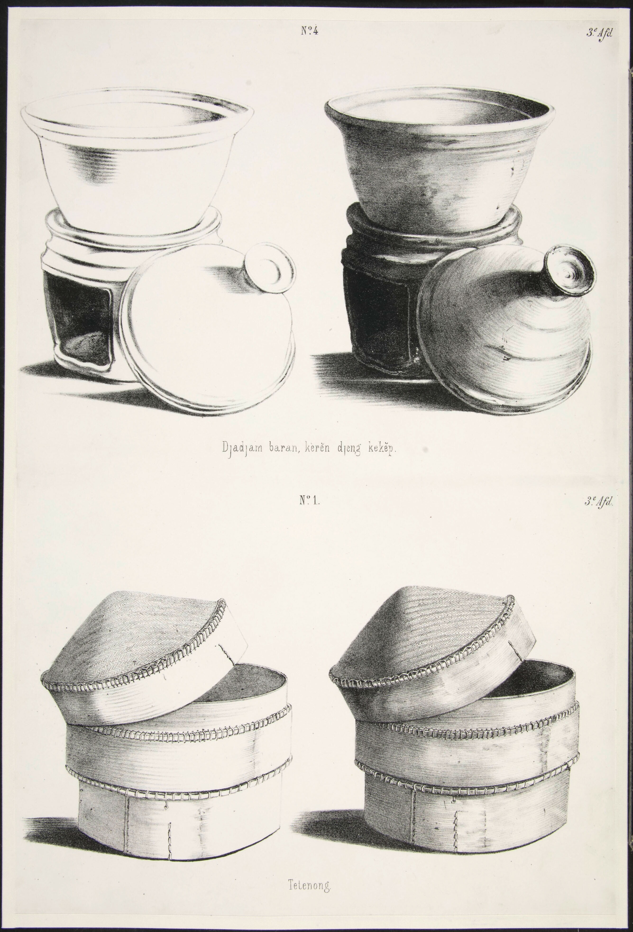 Een komfoortje met bak (no 4) en manden om te stomen ( no 1)