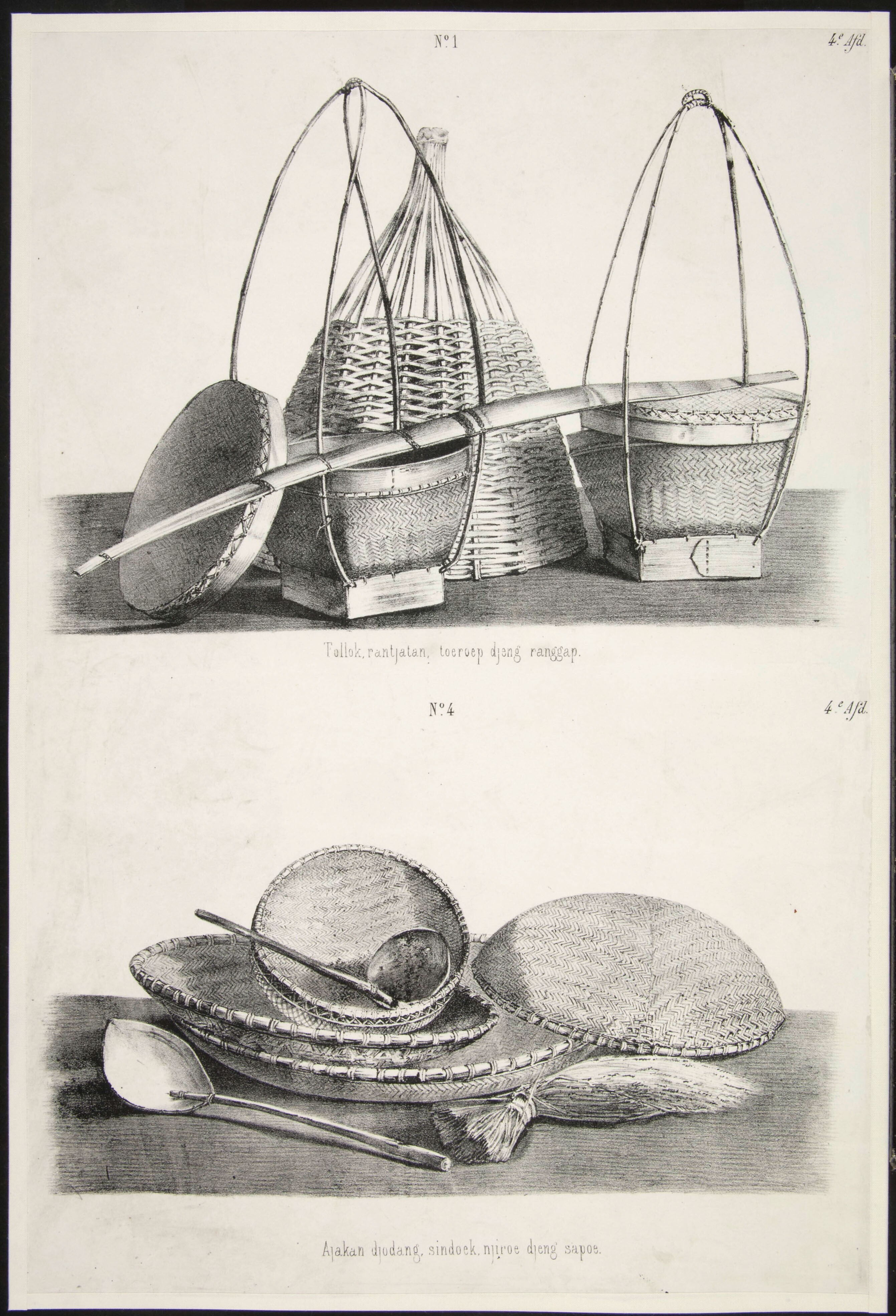 Een juk met manden (no 1) en manden en lepels (no 4)