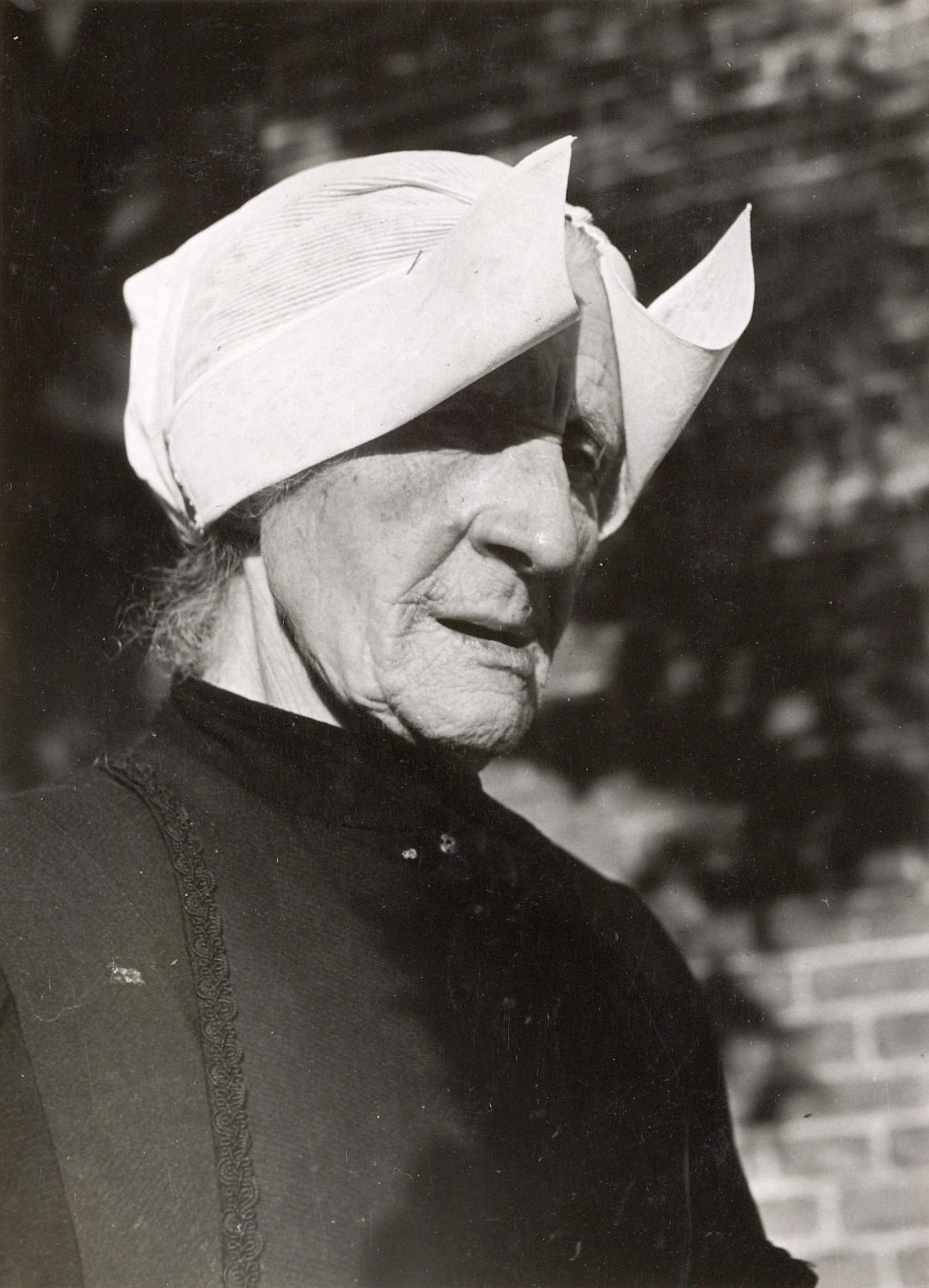 Vrouw uit Ottoland, gekleed in Zuid-Hollandse streekdracht. Ze draagt een rouwhul.