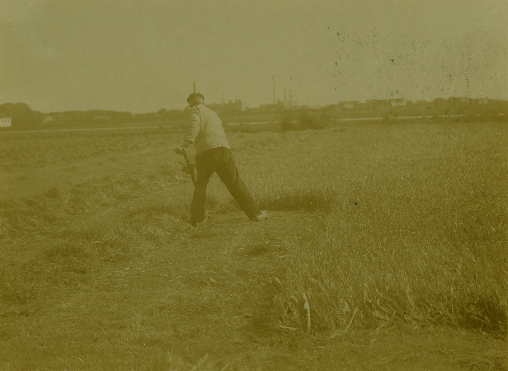 Maaien met de zeis, 1914–1934 (zwart-wit foto)