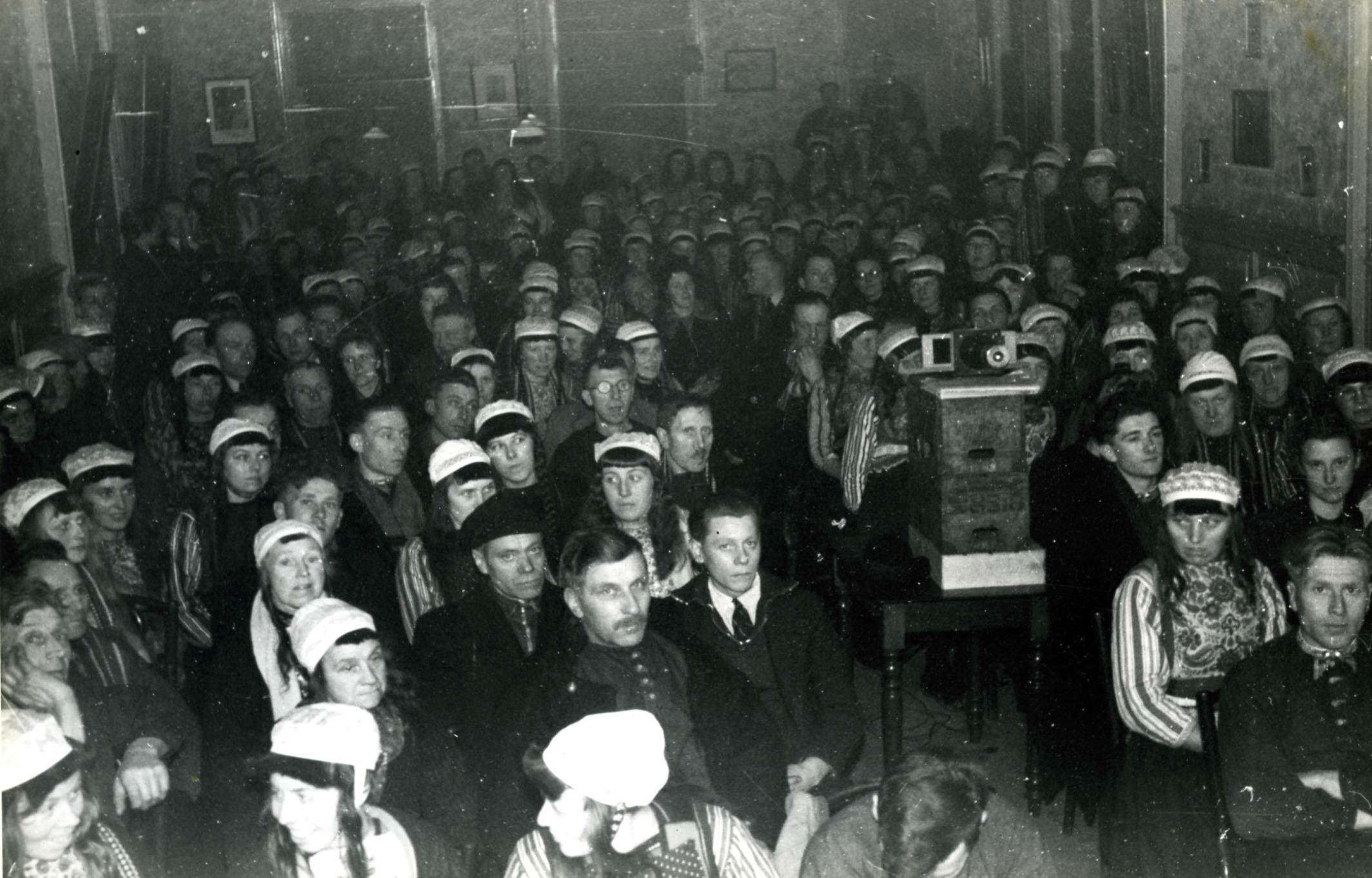 Lezing met lichtbeelden, Marken, 1944 (zwart-wit foto)