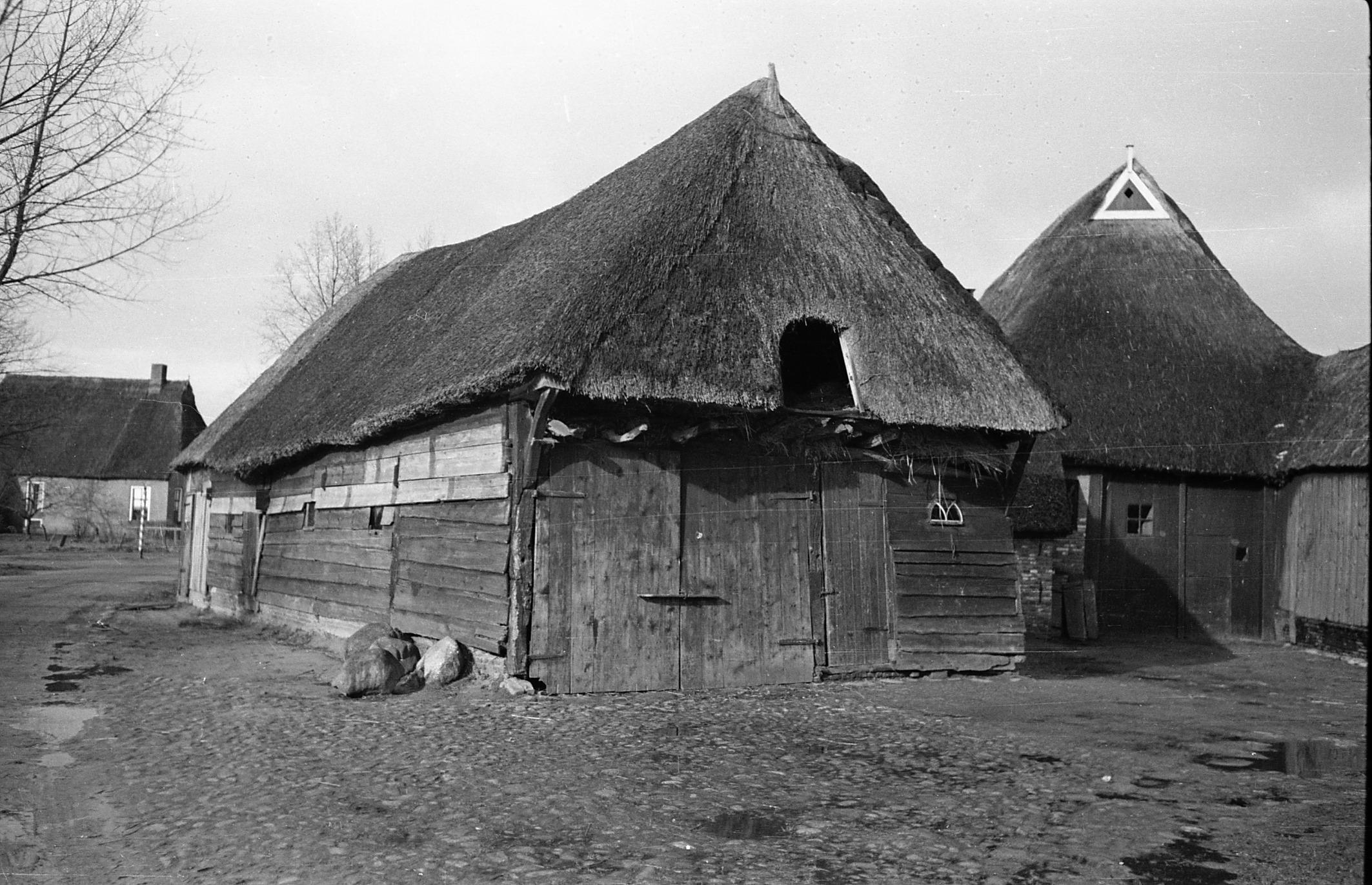 Schaapskooi bij een boerderij, Orvelte, 1944 (zwart-wit negatief)
