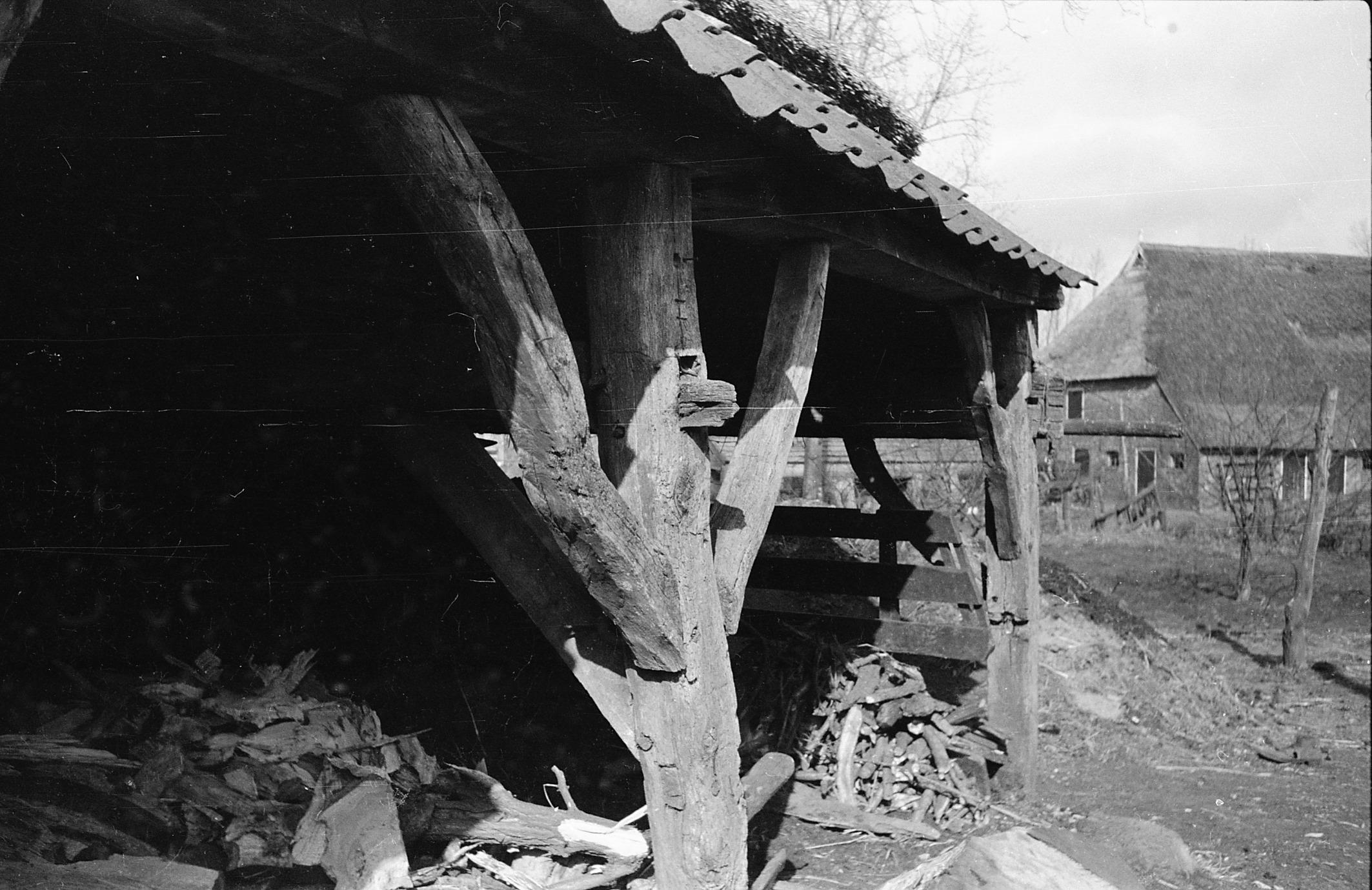 Gebint van een zuddenschuur, Orvelte, 1944 (zwart-wit negatief)