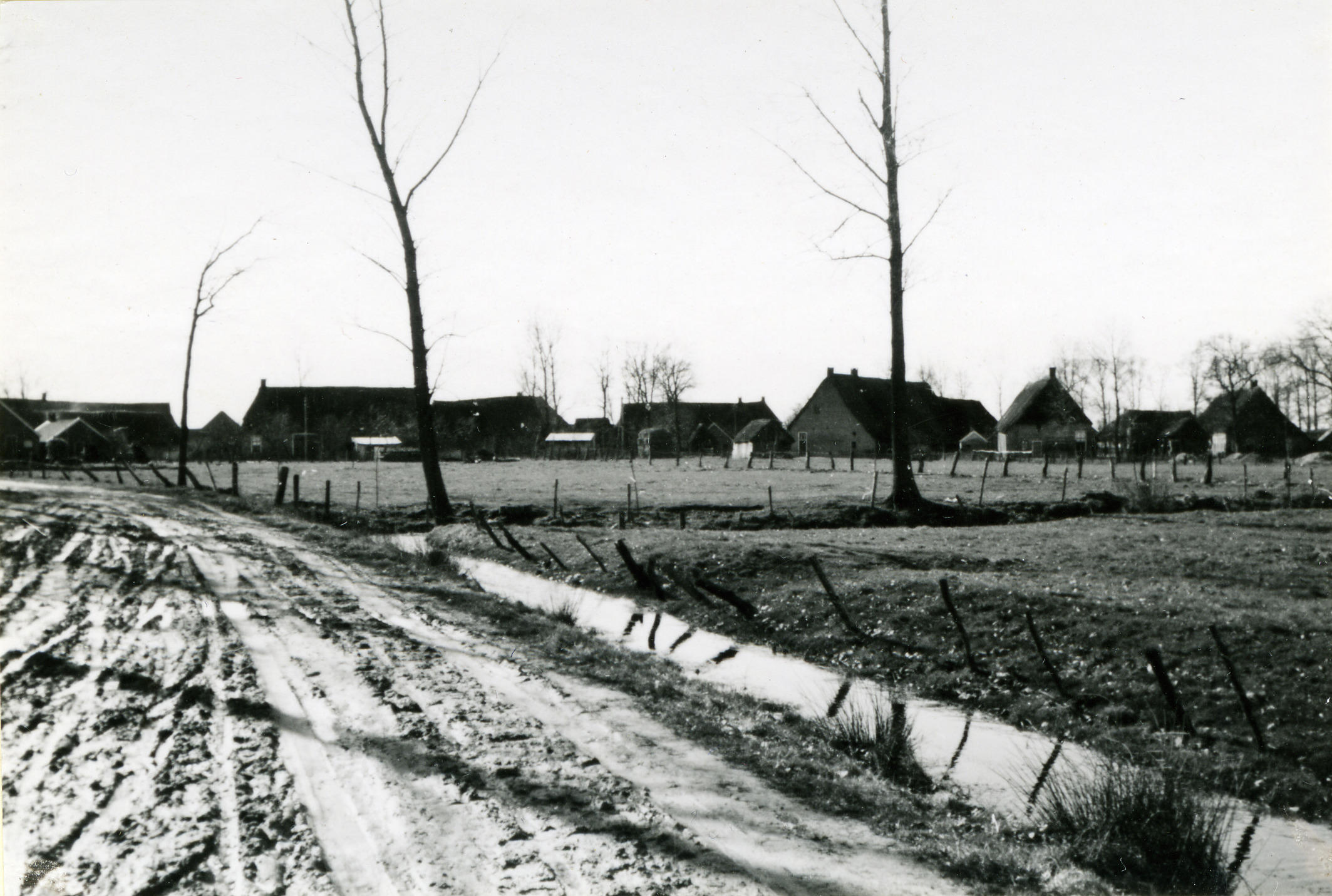 Boerderijen, Orvelte, 1944 (zwart-wit negatief)
