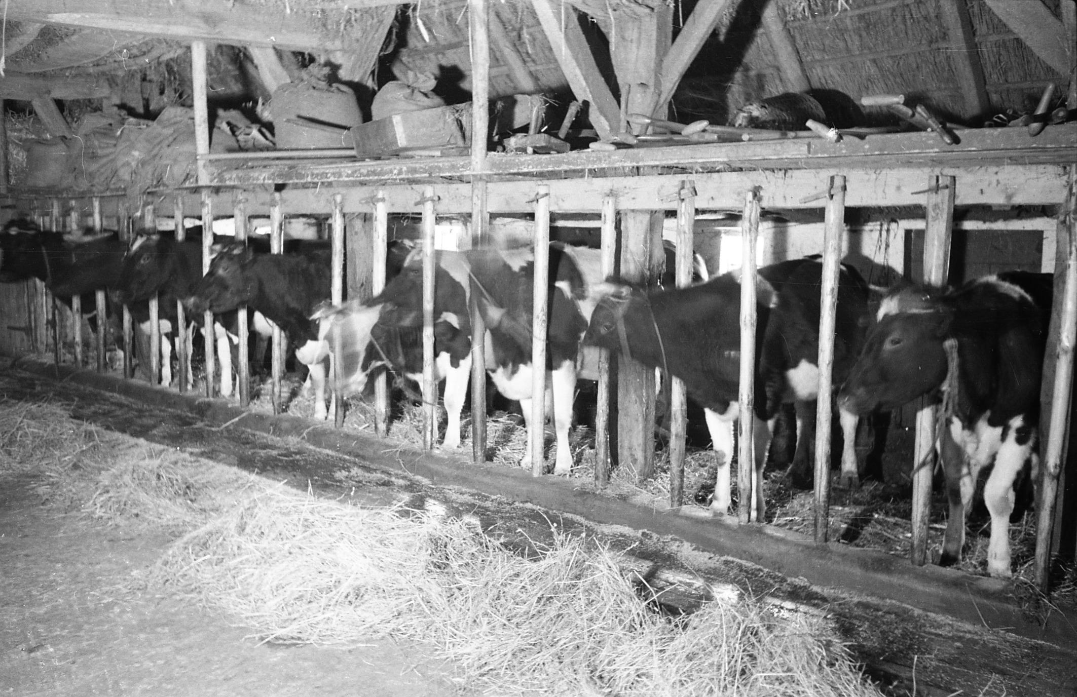 Stal met koeien, Orvelte, 1944 (zwart-wit negatief)