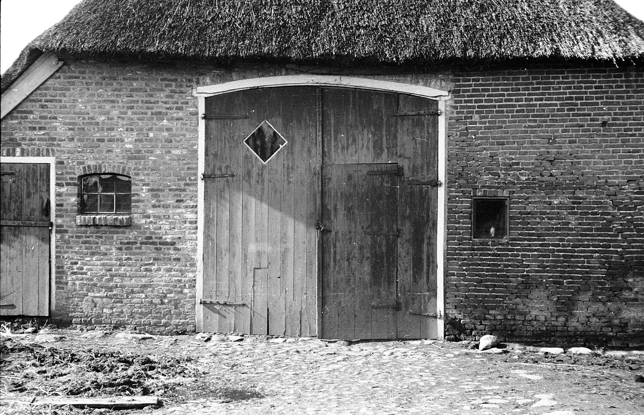 Achtergevel van een boerderij, Hijken, 1944 (zwart-wit negatief)