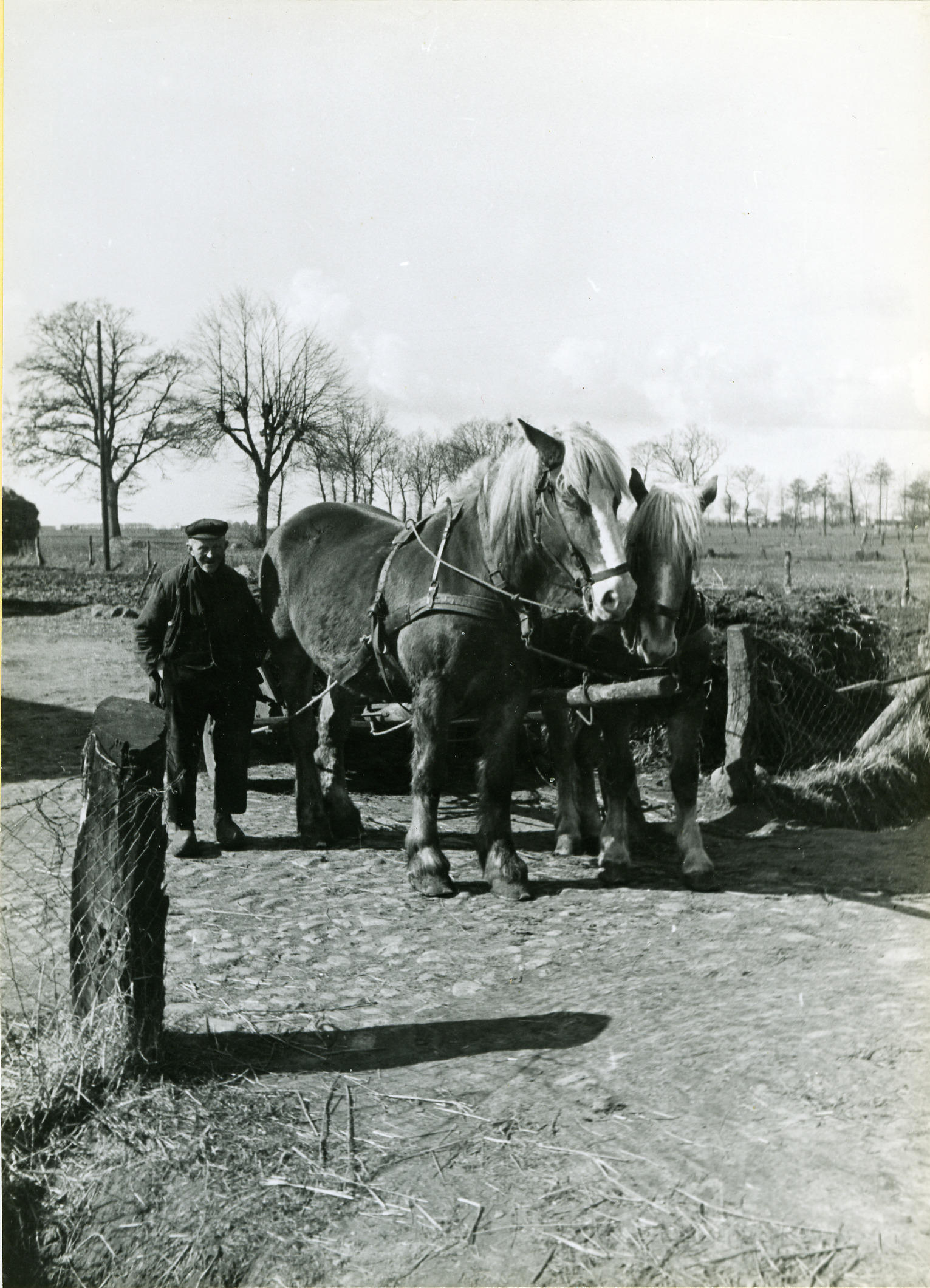Boer met twee paarden, Hijken, 1944 (zwart-wit foto)