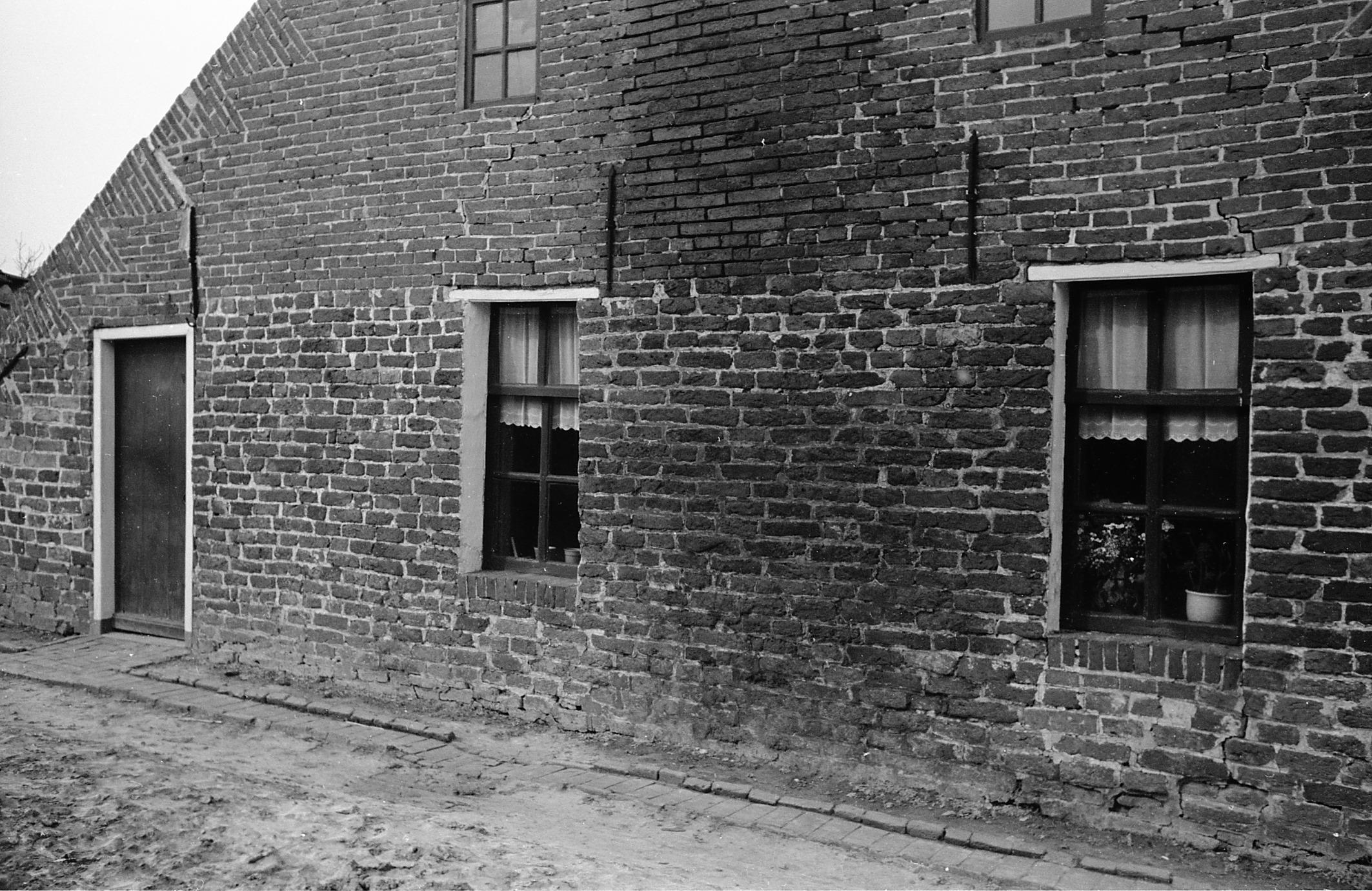 Detail metselwerk van een woning, Zandeweer, 1944 (zwart-wit negatief)