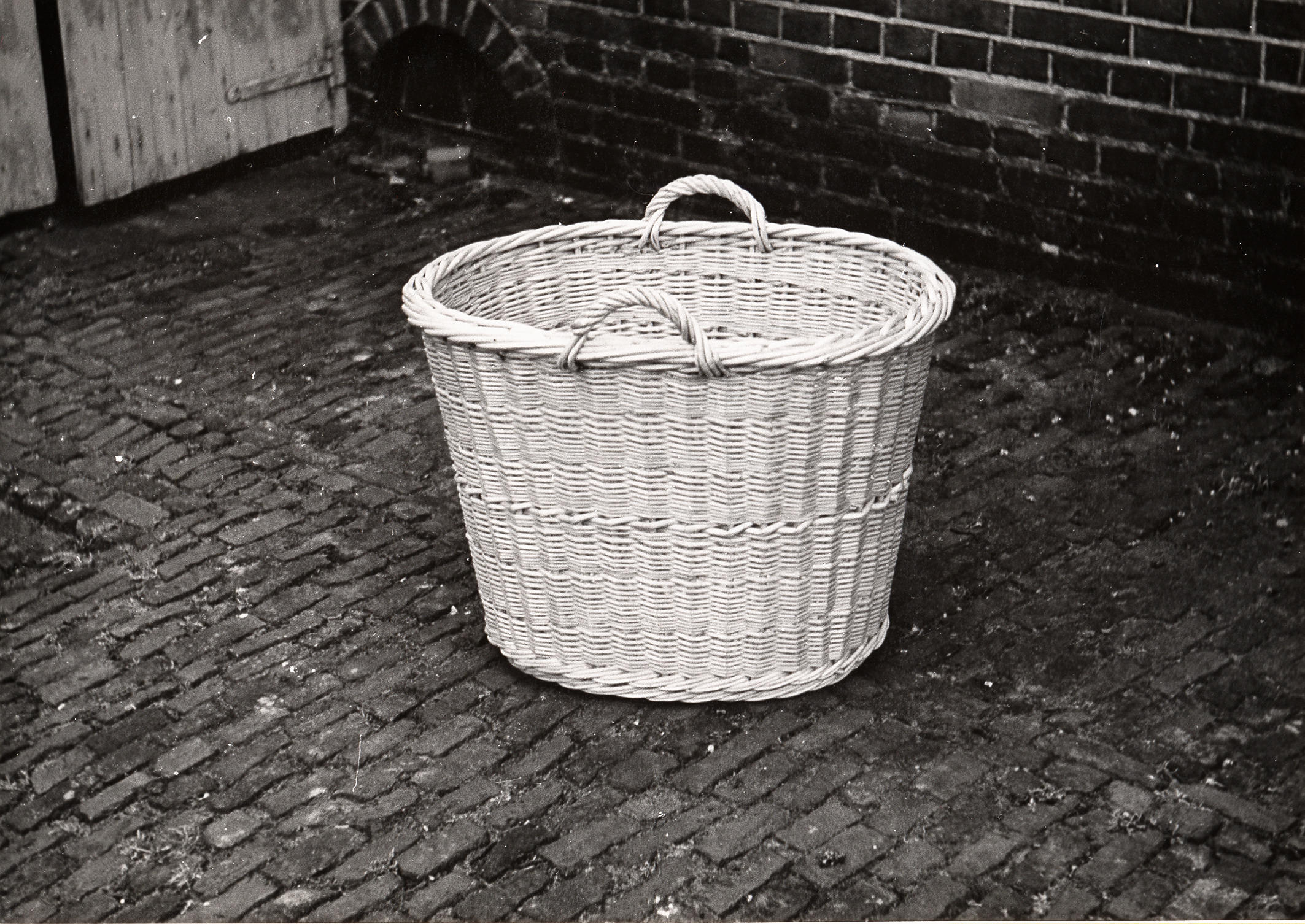Pakmand voor het vervoer van kluiten zelfgekarnde boter, een zogenoemde botterbenne (botermand). De mand is eigendom van een familie in Staphorst.