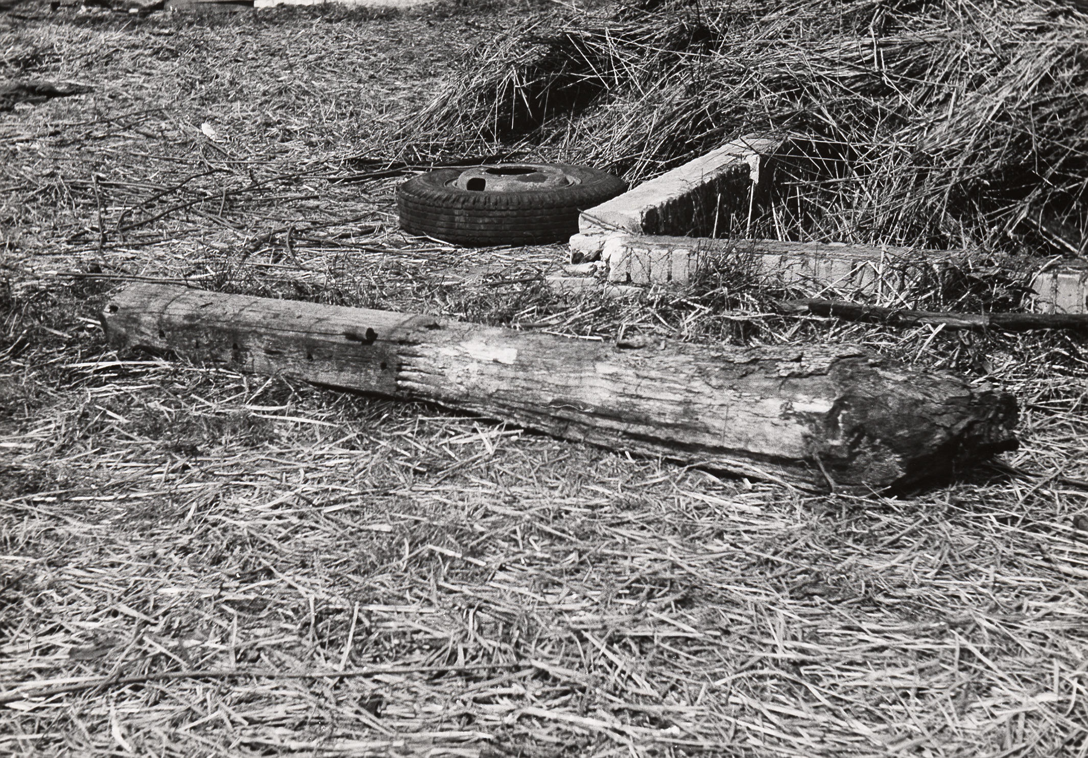 Afbraak van boerderij, Staphorst, 1950 (zwart-wit foto)