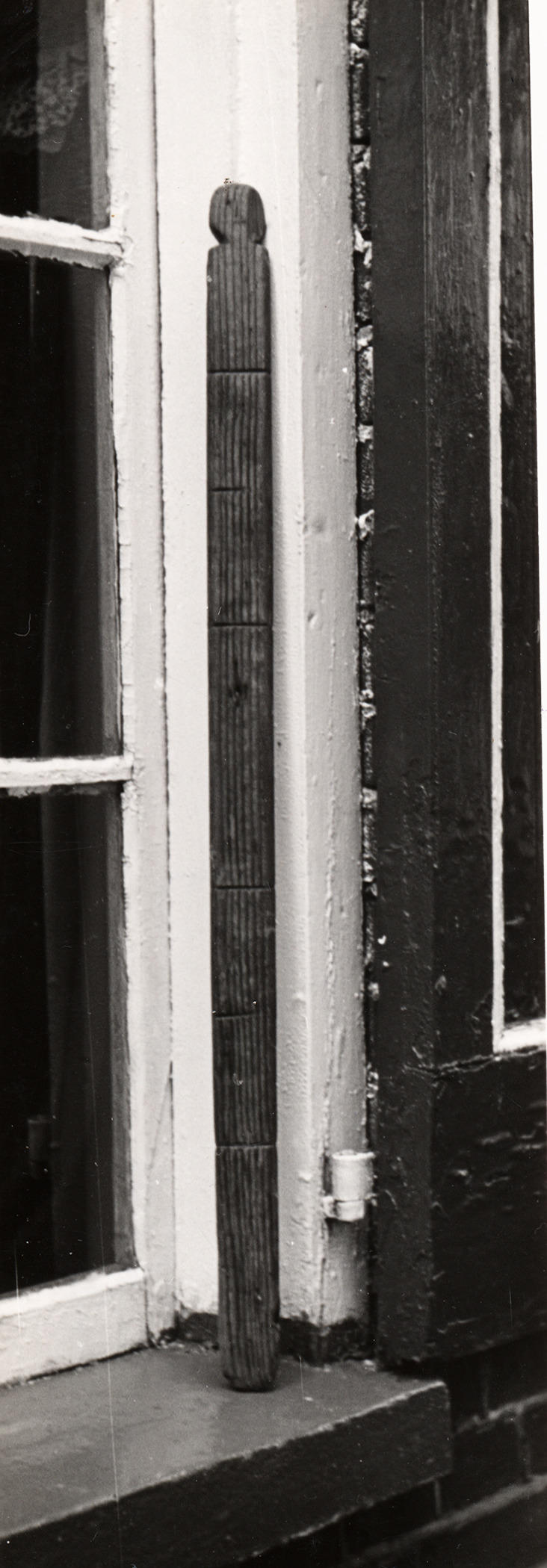 Ellestok op een vensterbank in Staphorst. De grenenhouten ellestok is onderverdeeld in hele en halve 'vörrels' (een vörrel is een vierde deel, is dit geval een kwart van een el).